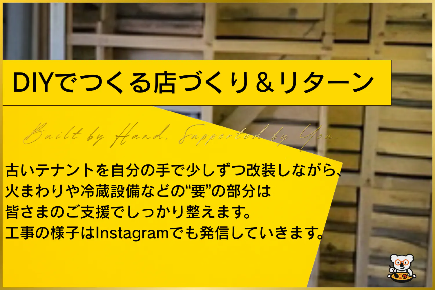 初期費用を抑えるため、テナントの内装やキッチンづくりはできる限りDIYで改装 していきます。