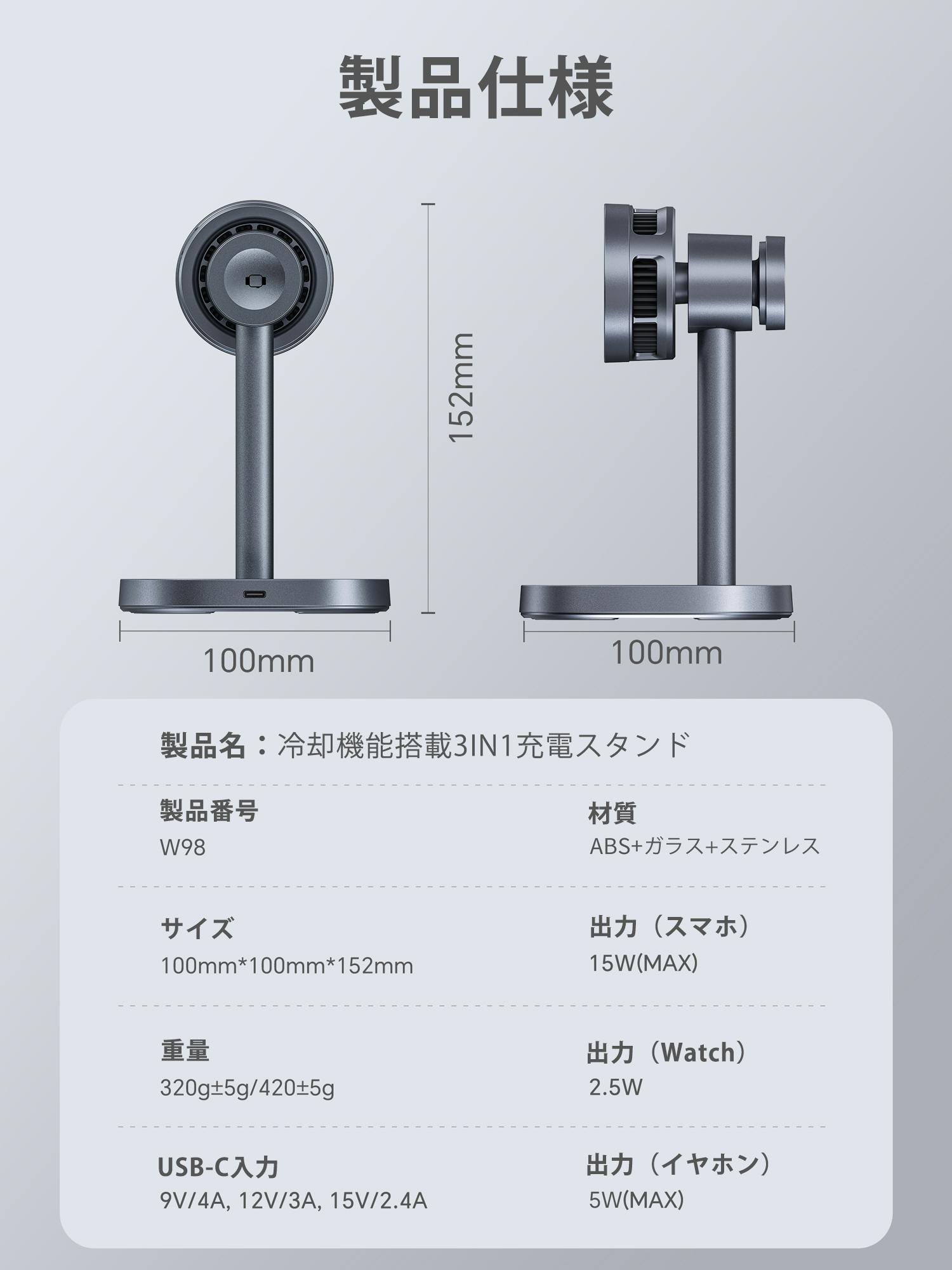 冷やしながらスマホを充電!ダブル冷却機能を備えた、3-IN-1ワイヤレス充電器