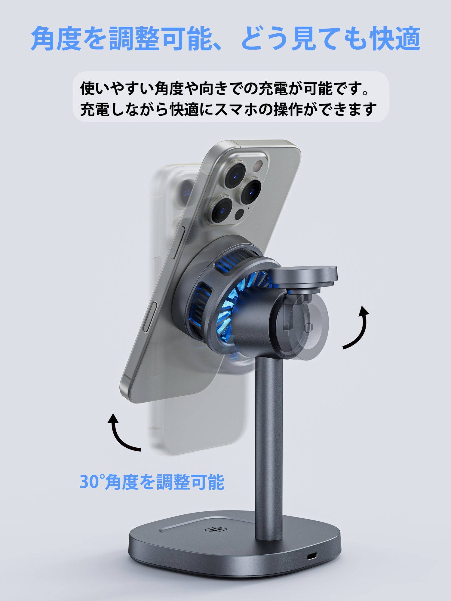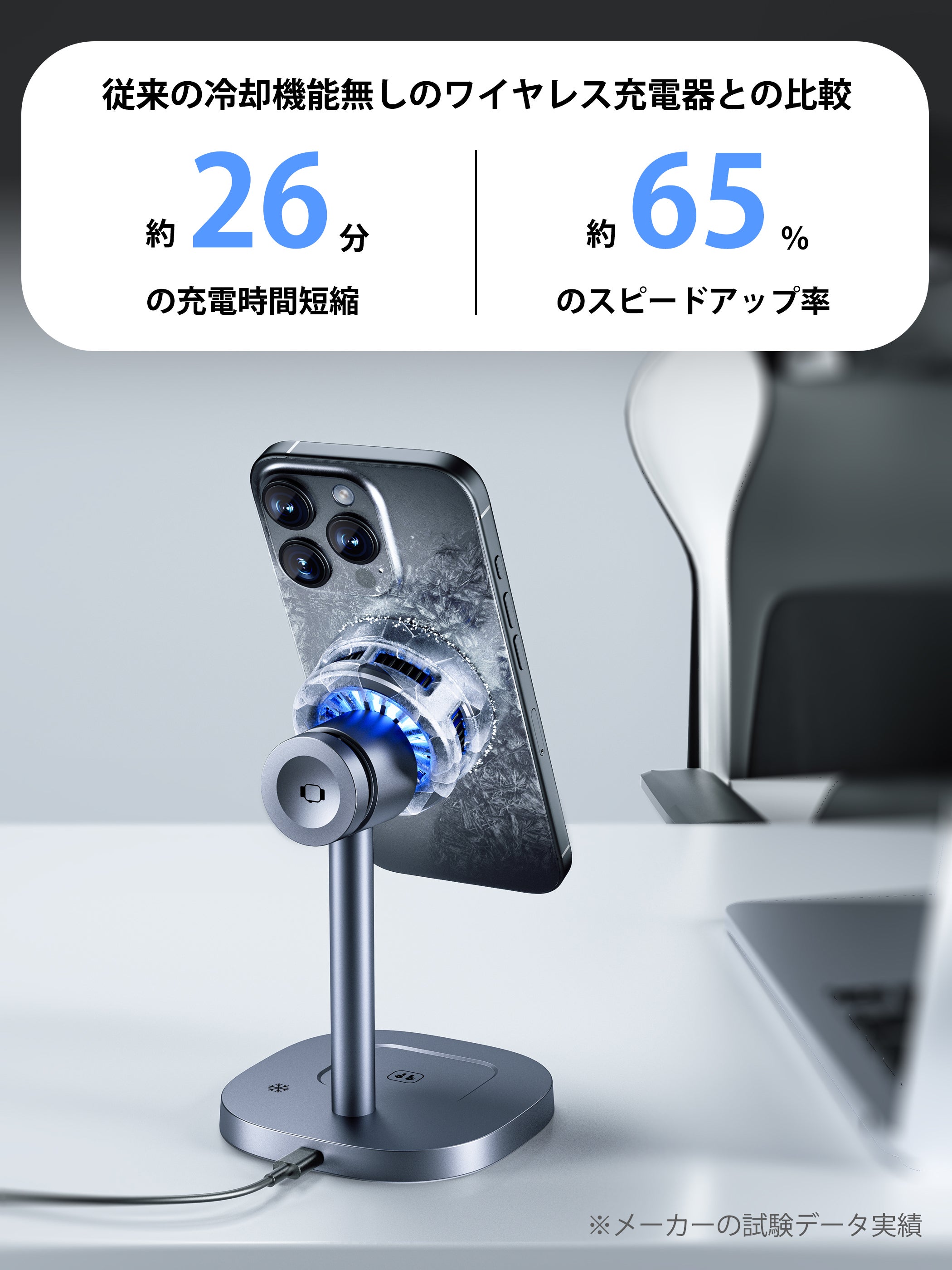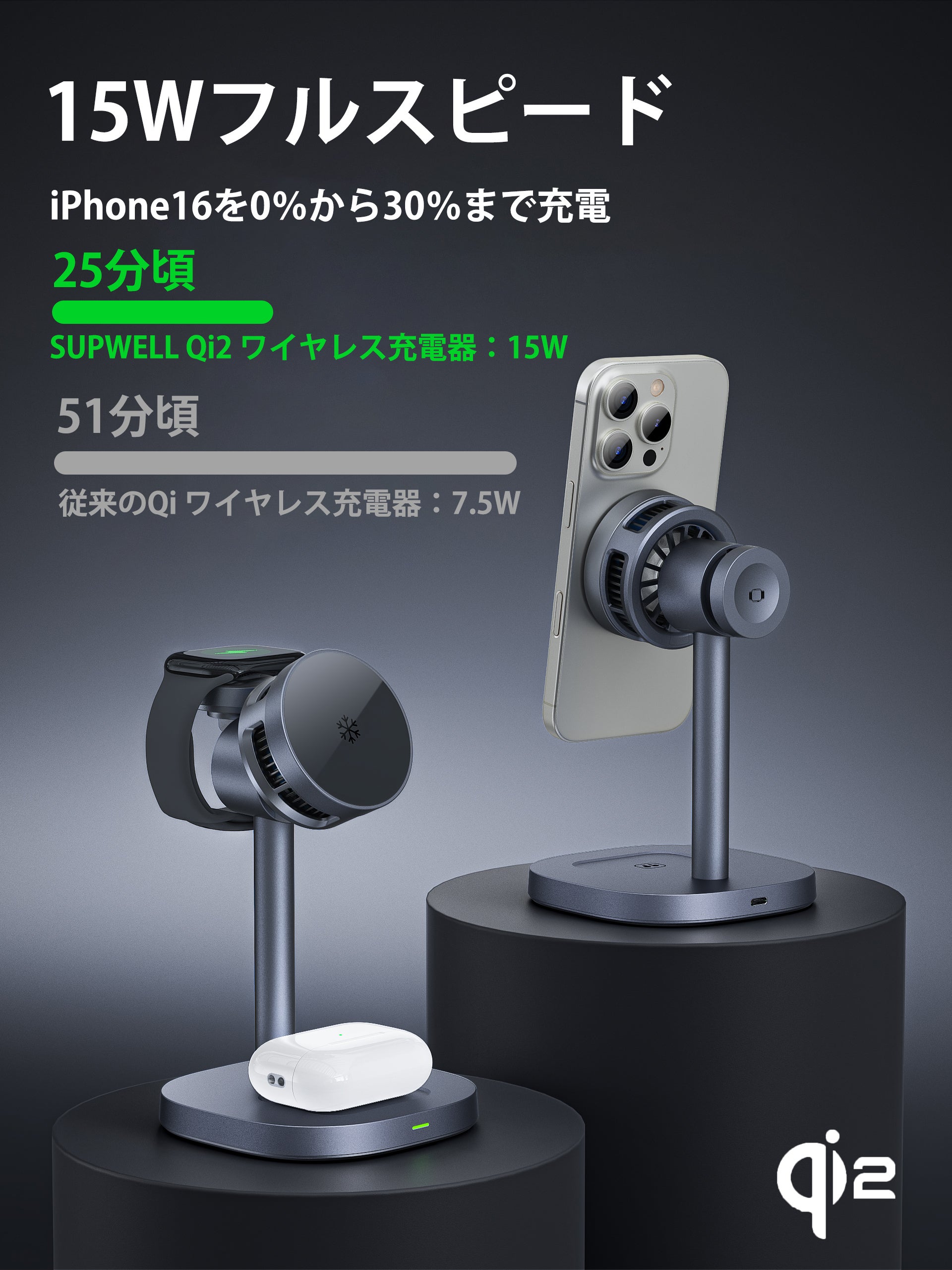 Qi2対応iPhoneシリーズなどの機器の急速充電が可能です。