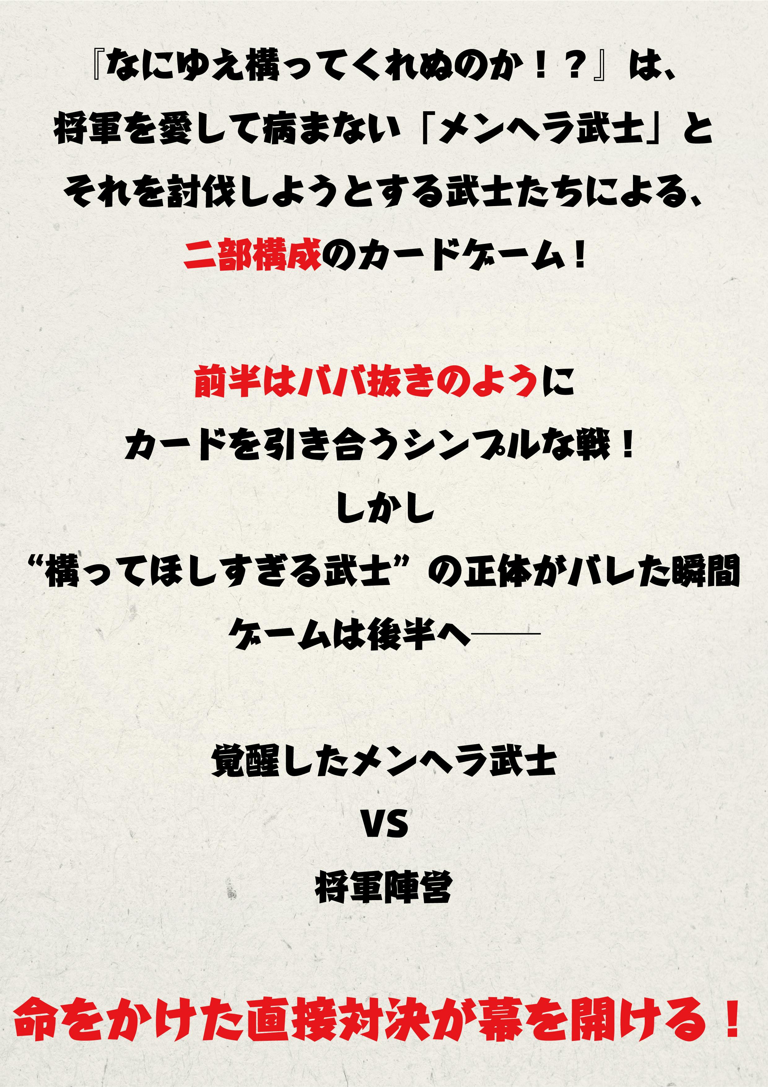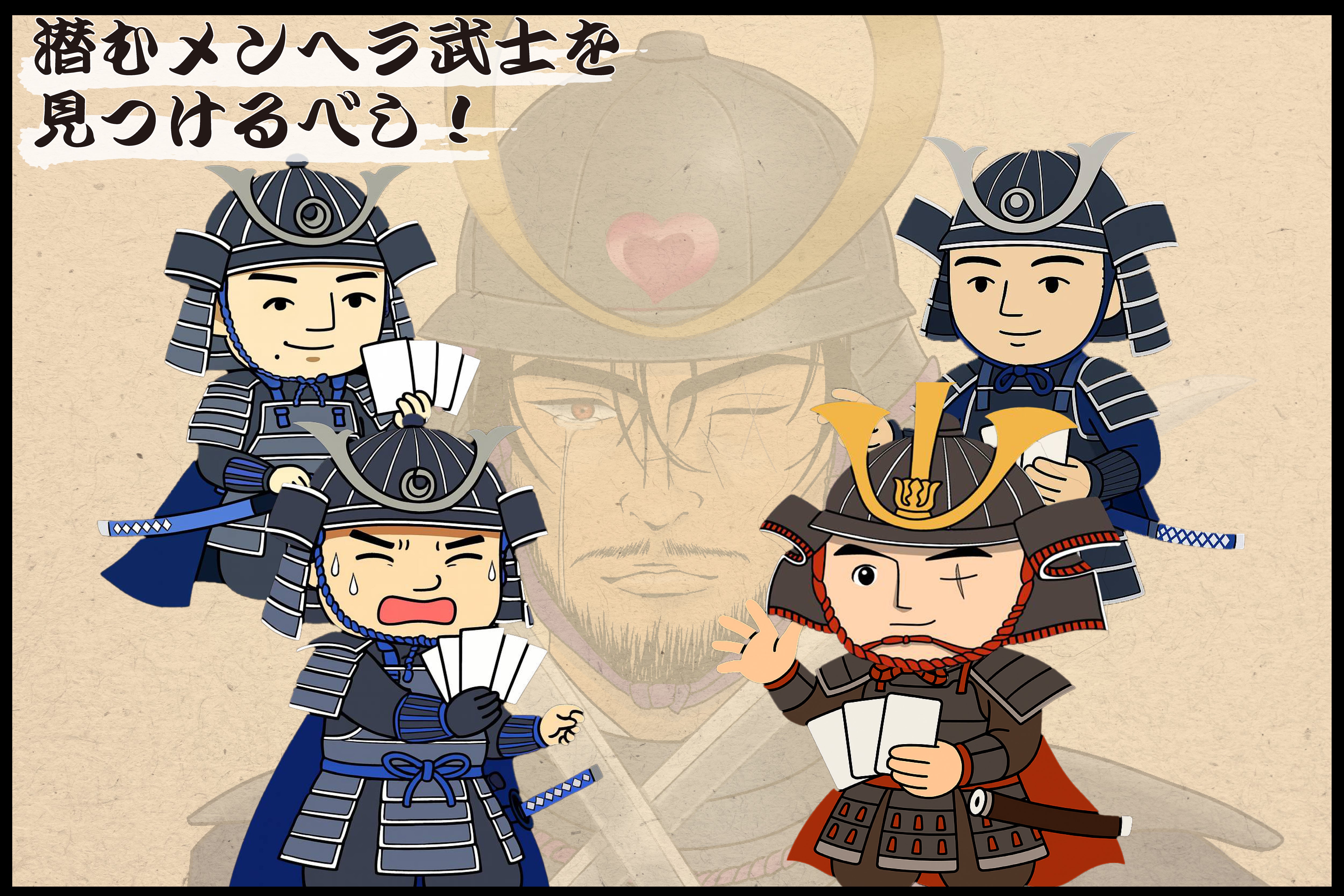 A.メンヘラ武士は将軍が幼い頃からお世話をしていた大目付です。将軍が初陣の時、敵の奇襲により将軍の左目は閉ざされました。メンヘラ武士はそれを自分のせいだと思い悩み、その頃から将軍に対して異様に過保護になりました。毎日将軍に関する日記をつけ、気づけば忠義は歪んだ愛情に変わりました。