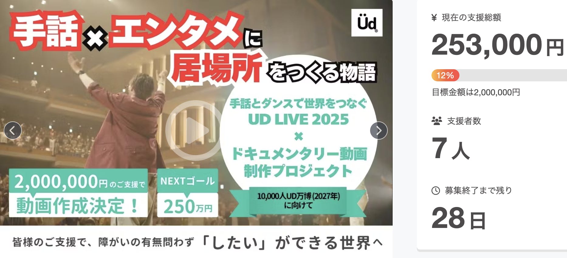 集まった資金は、ドキュメンタリー動画の制作費、UD LIVE 2025のイベント運営費、その他DVD制作費などに大切に使わせていただきます。