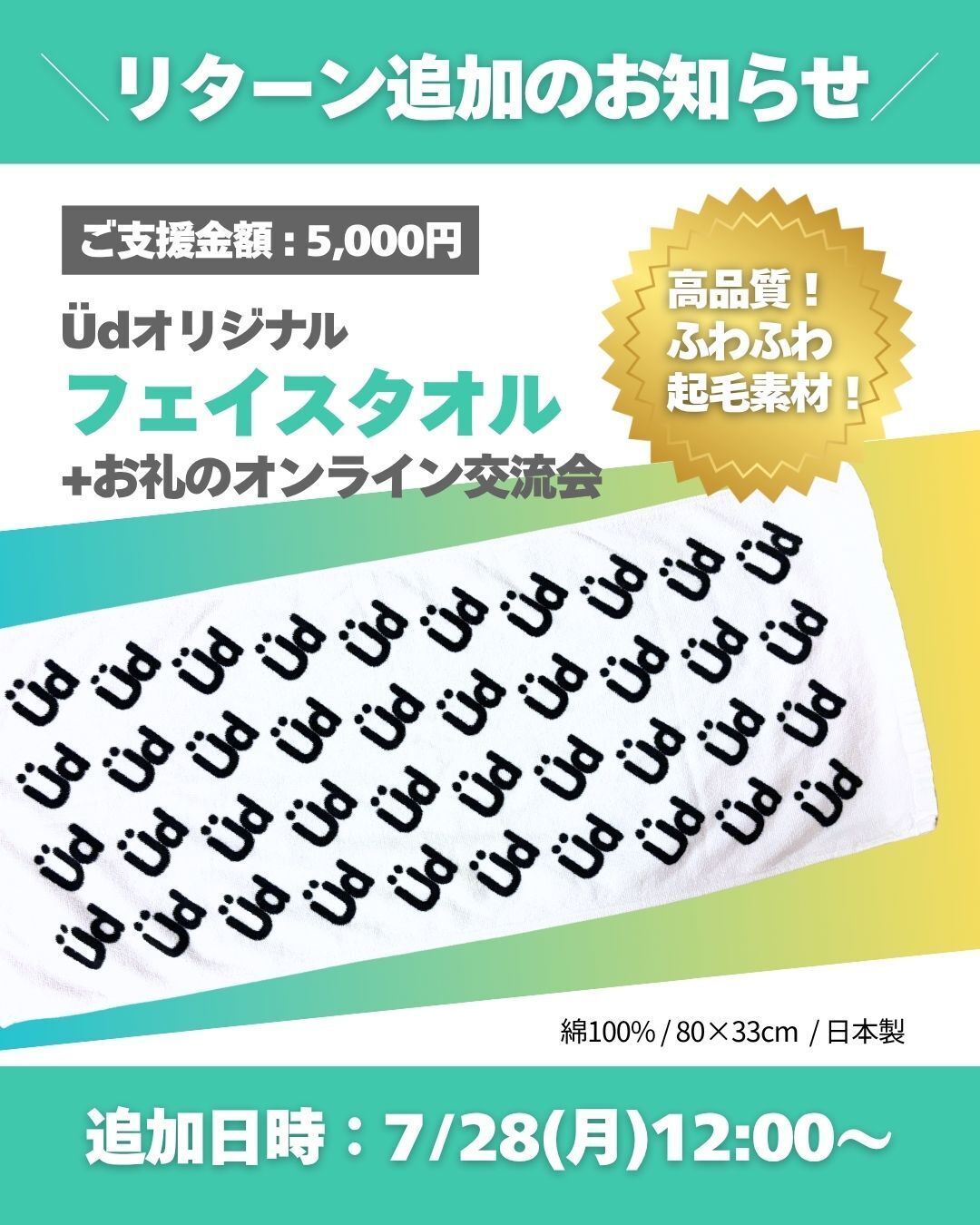 二年前に限定販売した、Üdオリジナルフェイスタオルです。