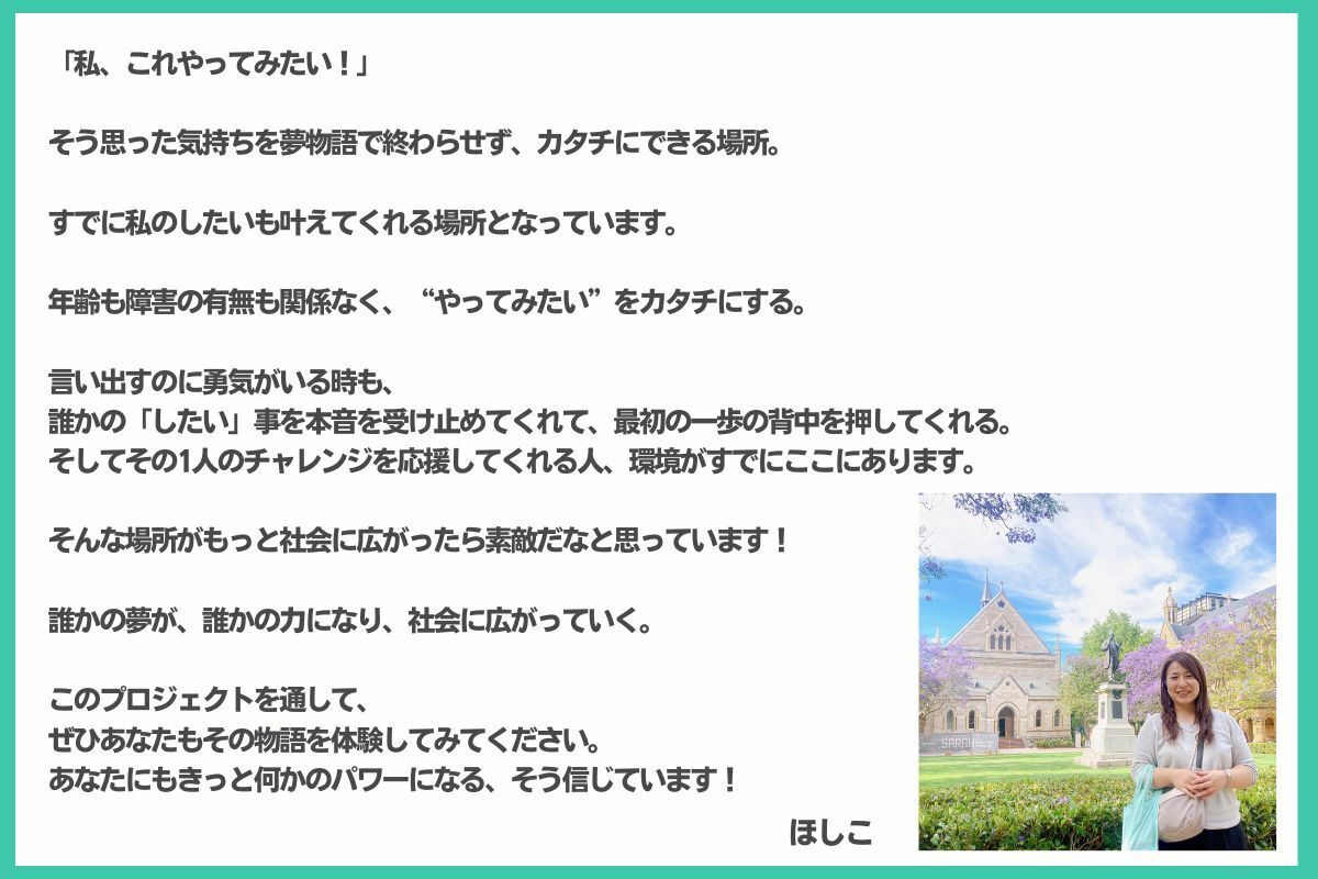 誰かがあきらめていた「したい」が叶うきっかけになります。
