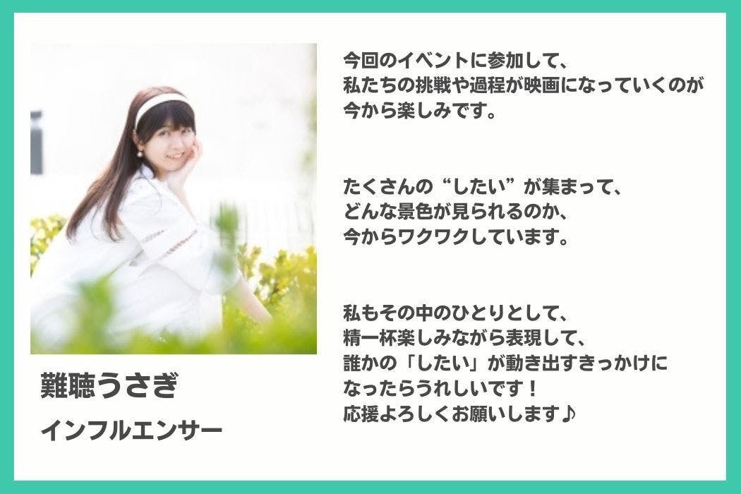 このイベントは、ただのエンタメではありません。手話で踊る最多人数の世界記録に再挑戦しながら、聴覚障がいのある子どもたち、手話ダンサー、健常者のダンサー、インフルエンサー、プロのアーティストと共に、全ての「したい」が交差する場です。そしてこの日までの道のりにある、涙、葛藤、成長、そして“希望の芽”を記録したいのです。ただの舞台裏でも、ただの記録映像でもない。このドキュメンタリームービーは、「したい」が叶っていくプロセスそのものを映す作品になります。