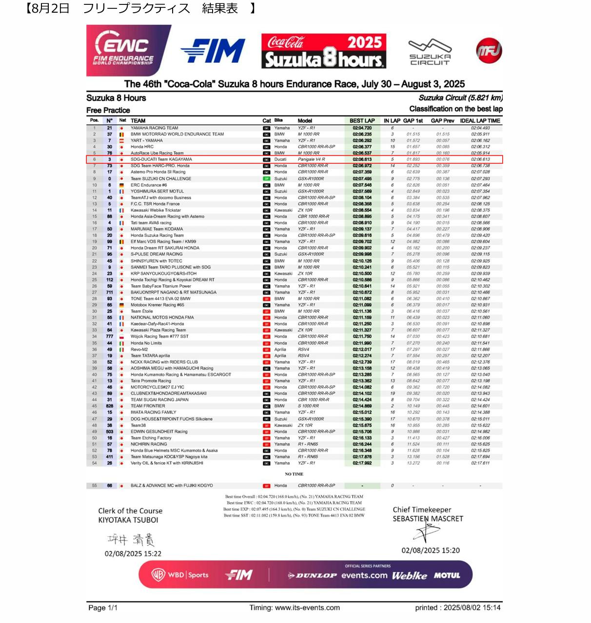 2025 FIM世界耐久選手権「コカ・コーラ」鈴鹿8時間耐久ロードレース