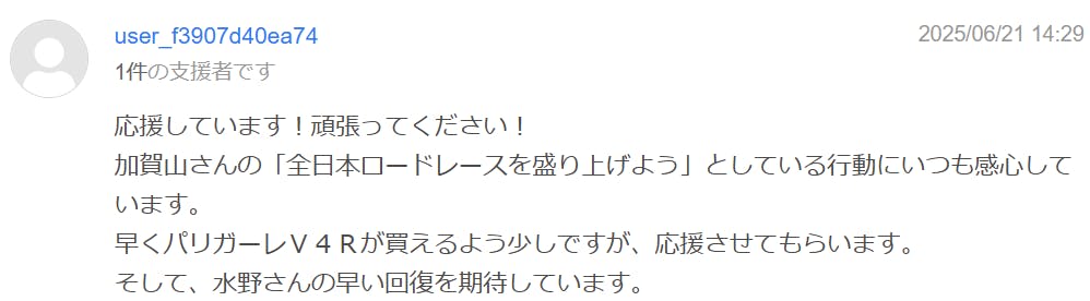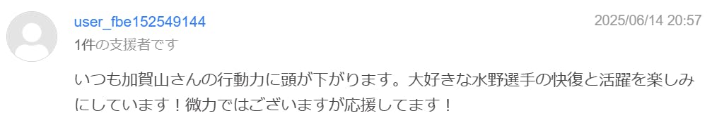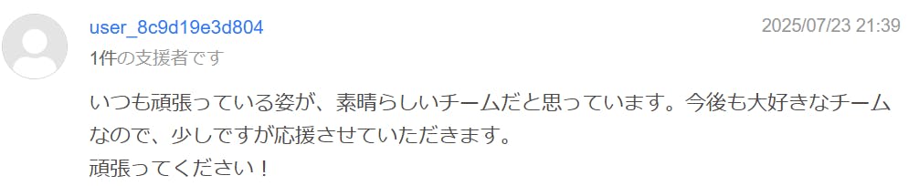 皆様の応援は、単なる資金だけでなく