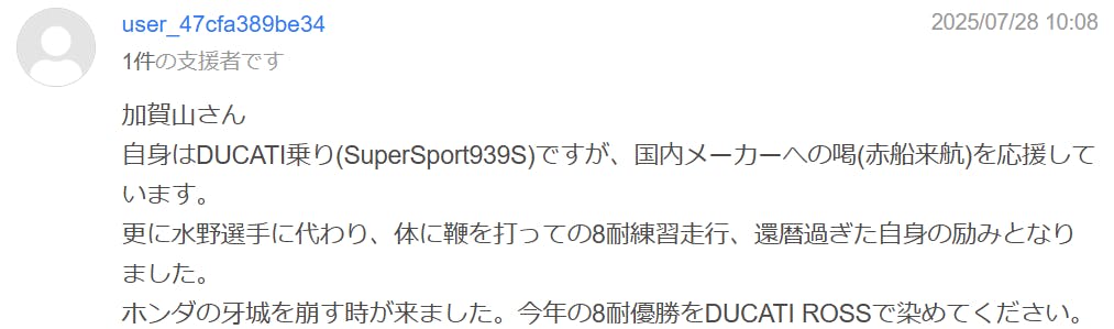 どうか、DUCATI Team KAGAYAMAの「復活」、そして「優勝」への道のりを