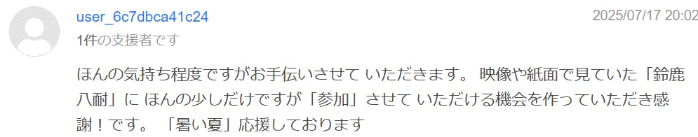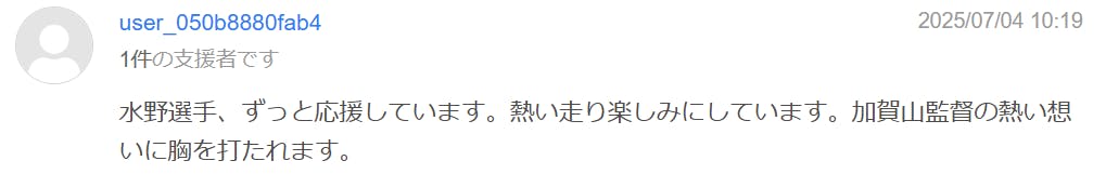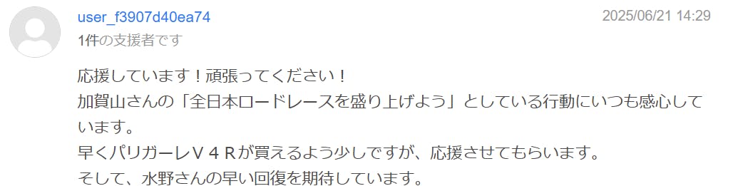まだまだ支援者の声を皆様にも紹介させて頂きたいと思いまして