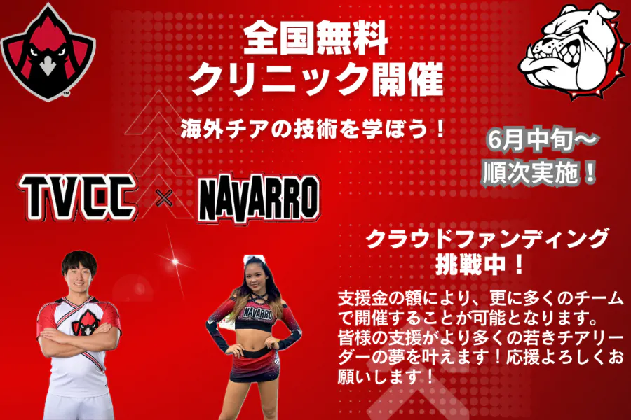 このプロジェクトでは、日本全国を巡ってチアリーディングのクリニックを開催し、技術や経験、そして成功するための秘訣を伝えたいと考えています。特に、チアリーディングの本場であるアメリカでの貴重な経験を、日本の若いチアリーダーたちに伝えたいと思っています。クリニックは6月に開催し、参加費は無料とすることで、なるべく多くのチアリーダーに参加してもらい、日本全体のチアリーディングのレベルを底上げすることが最終目標です。