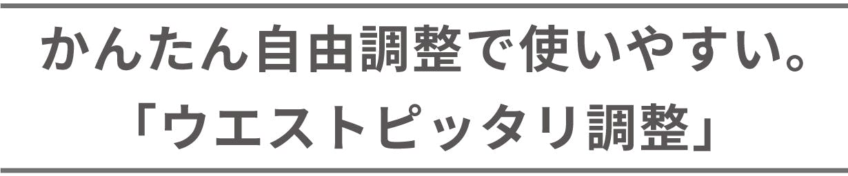 「一瞬でピタッ。」ベルトでは何も気にせず、どんなスタイルでもジャストサイズで着用が可能です!