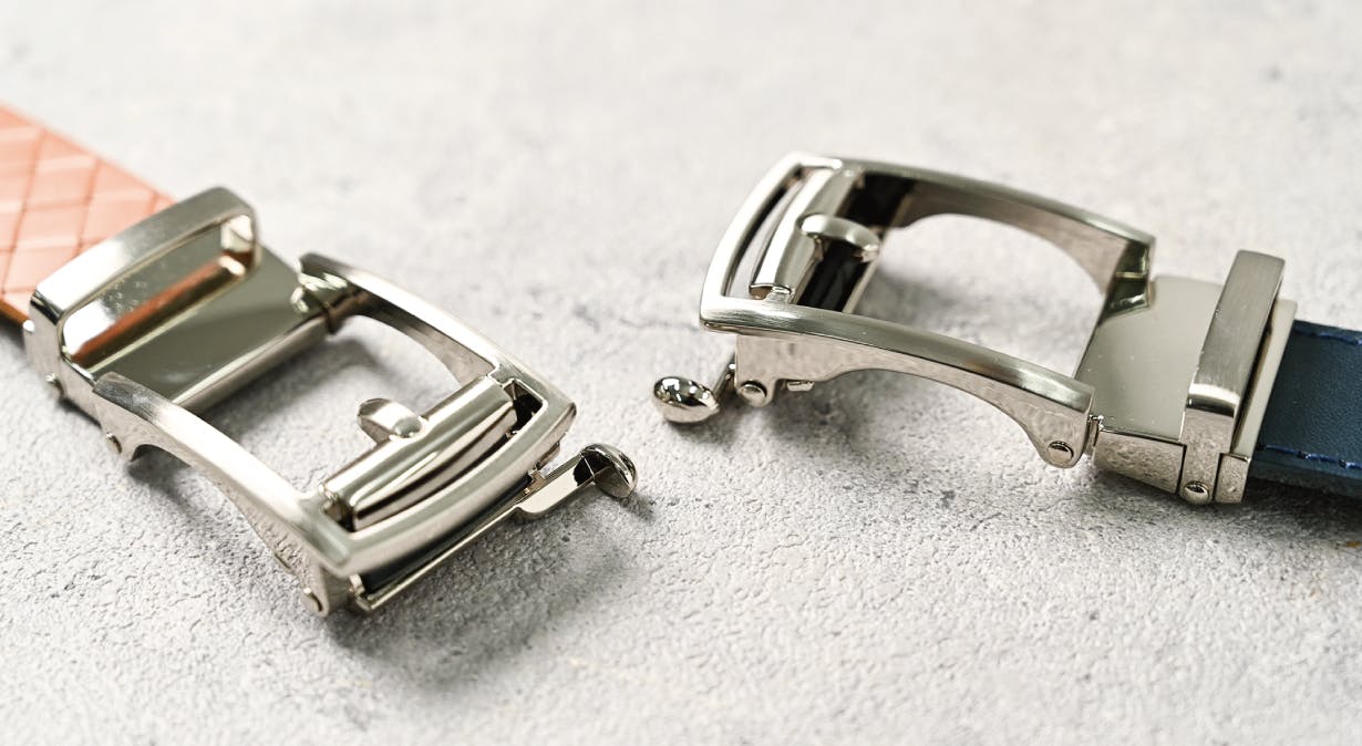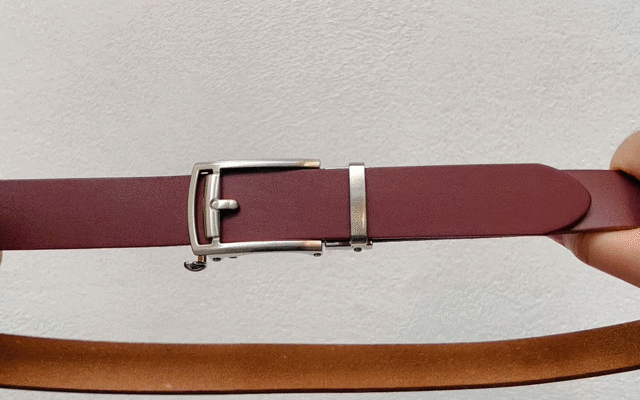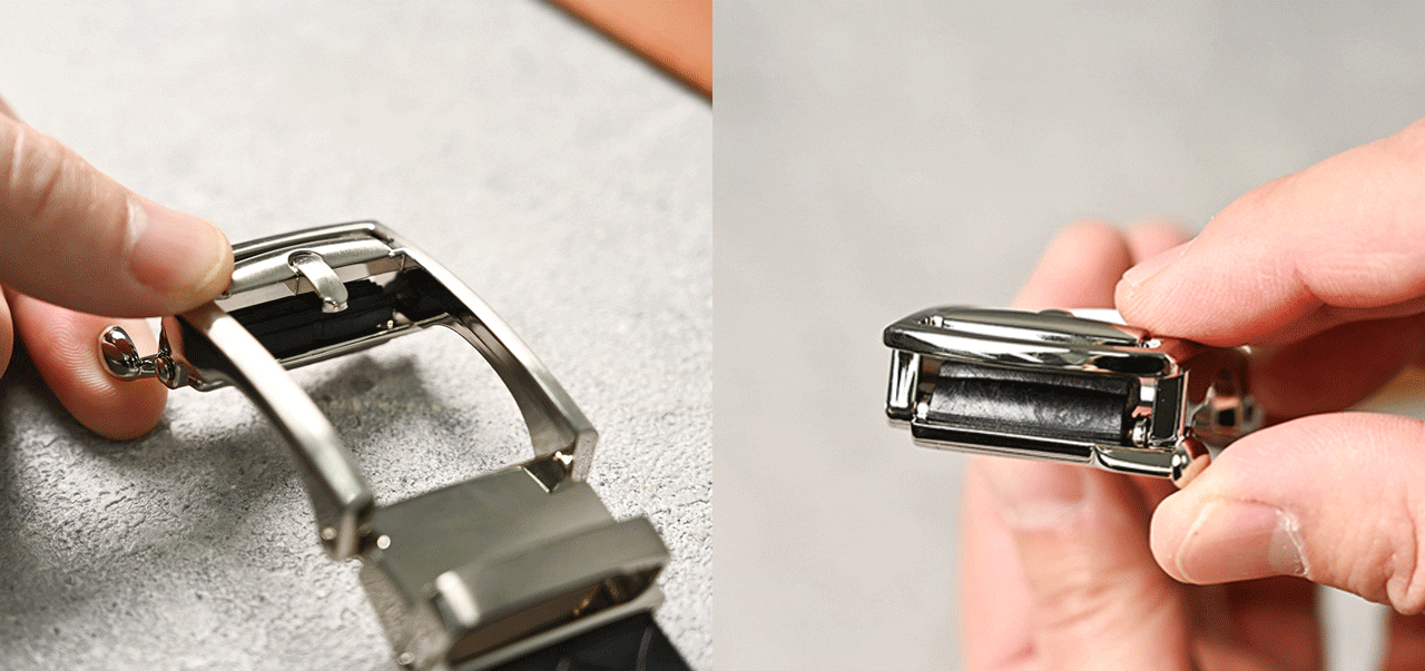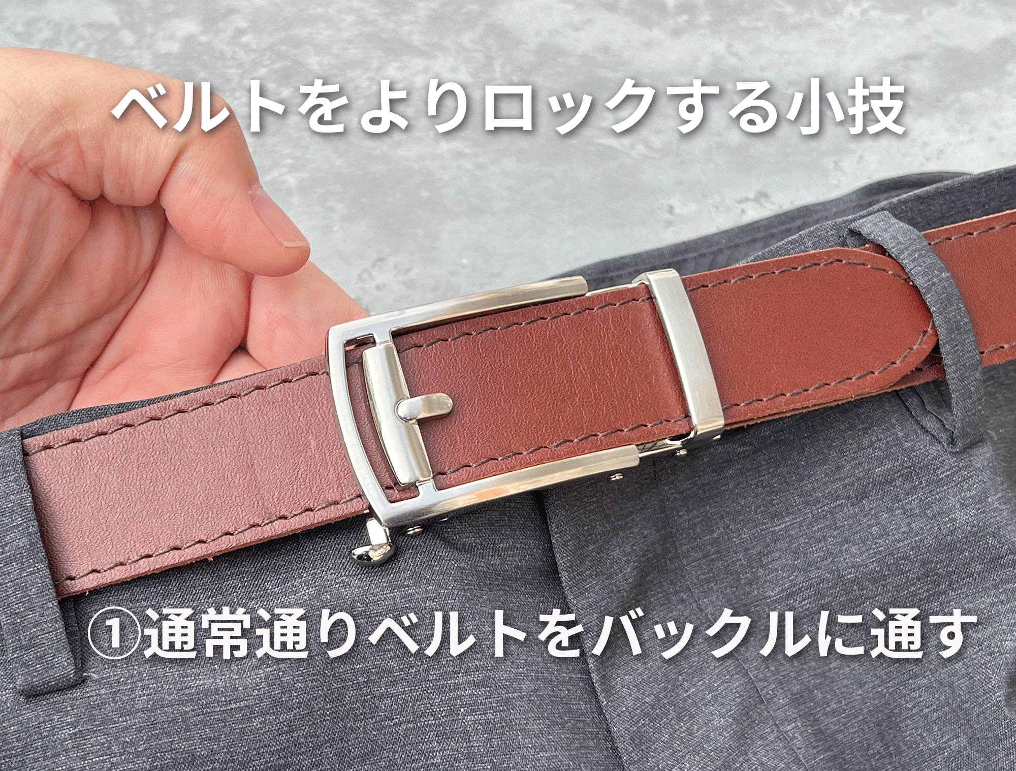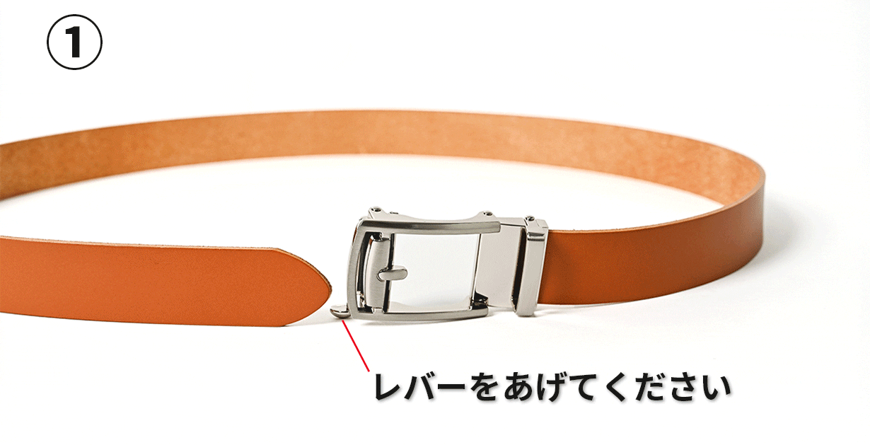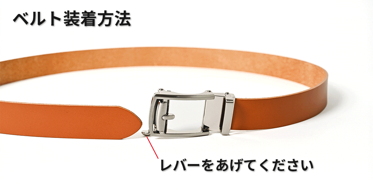 使用頻度やベルトの革の部位や硬さなど個体差により、部分的にベルトをロックが弱い場合があります。その時はバックルのレバーを押し下げるとストッパーを強く締め付けることができます。