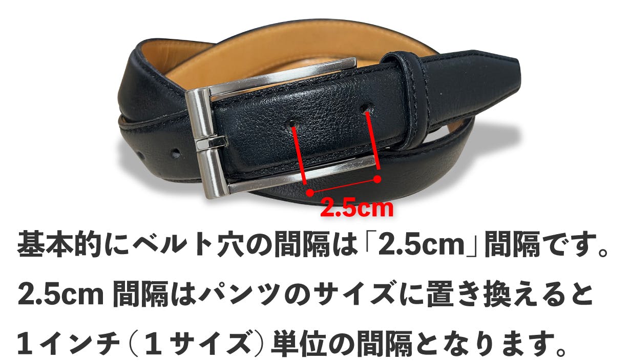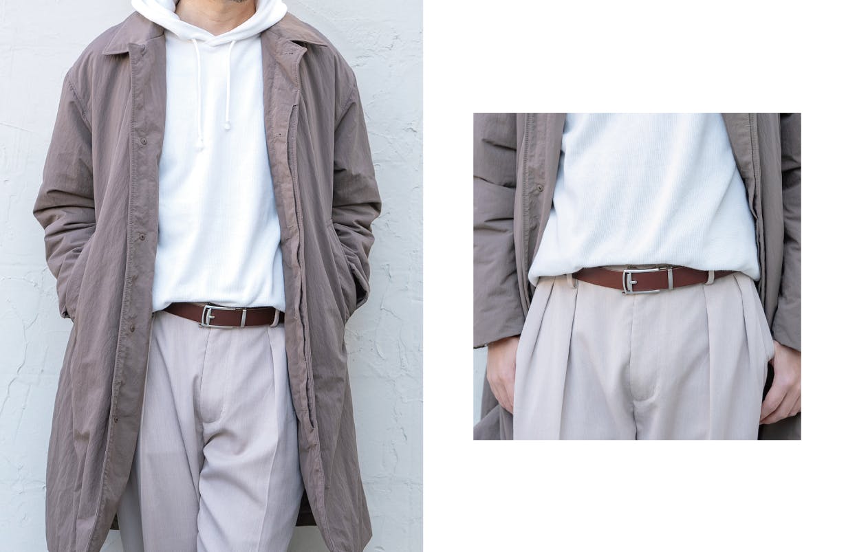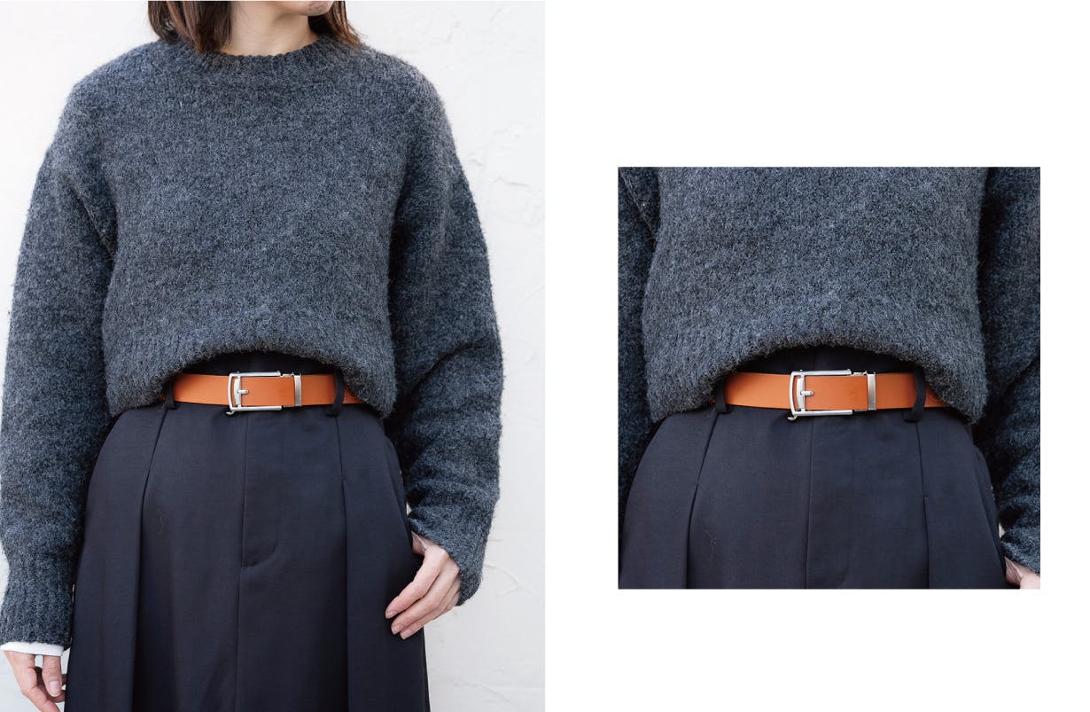 3.5cm幅のベルトと比べると、3cm幅のナロータイプの方が一目瞭然スマートです。