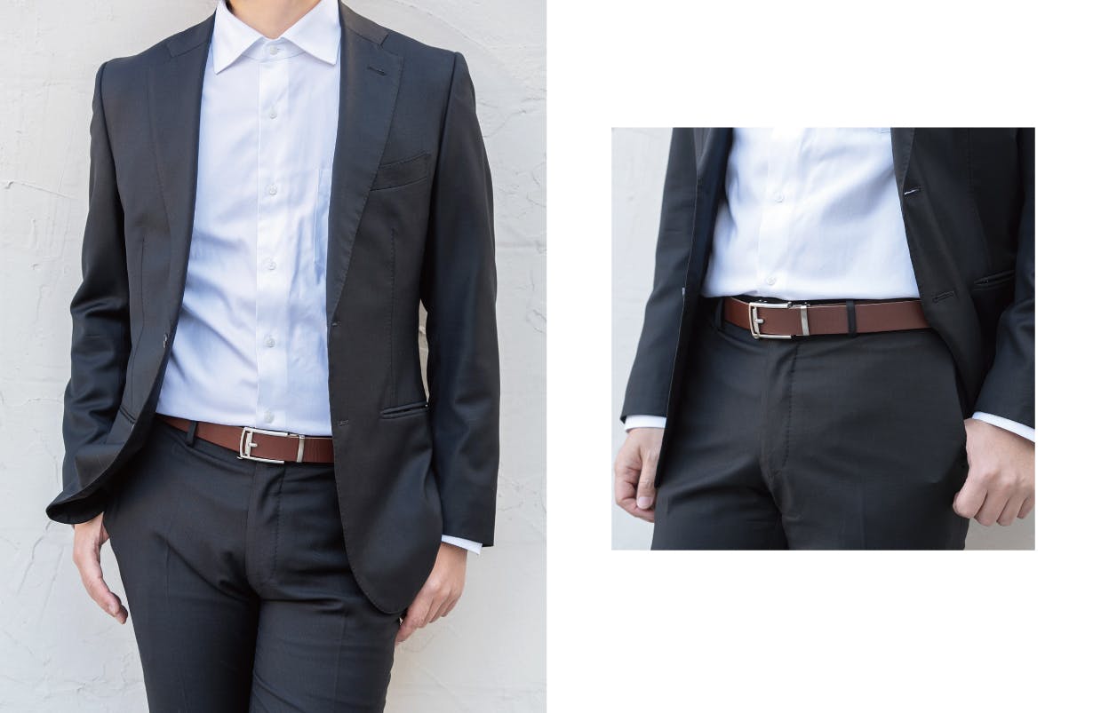 ビジネスではシャツをタックインし、ベルトを装着することが大半です。