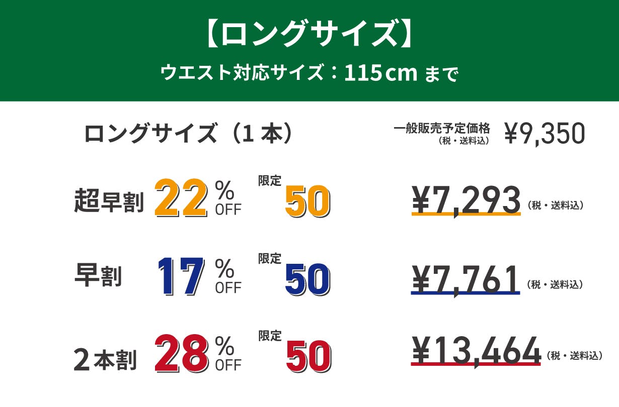 体の大きい人のために「ロングサイズ:ウエストサイズ115cm対応」と従来よりも長いベルトをご用意しています!ベルトの革は一枚革で繋ぎ目もありません。レギュラーサイズと同様の仕様となっておりますので、ぜひベルトをお愉しみください!