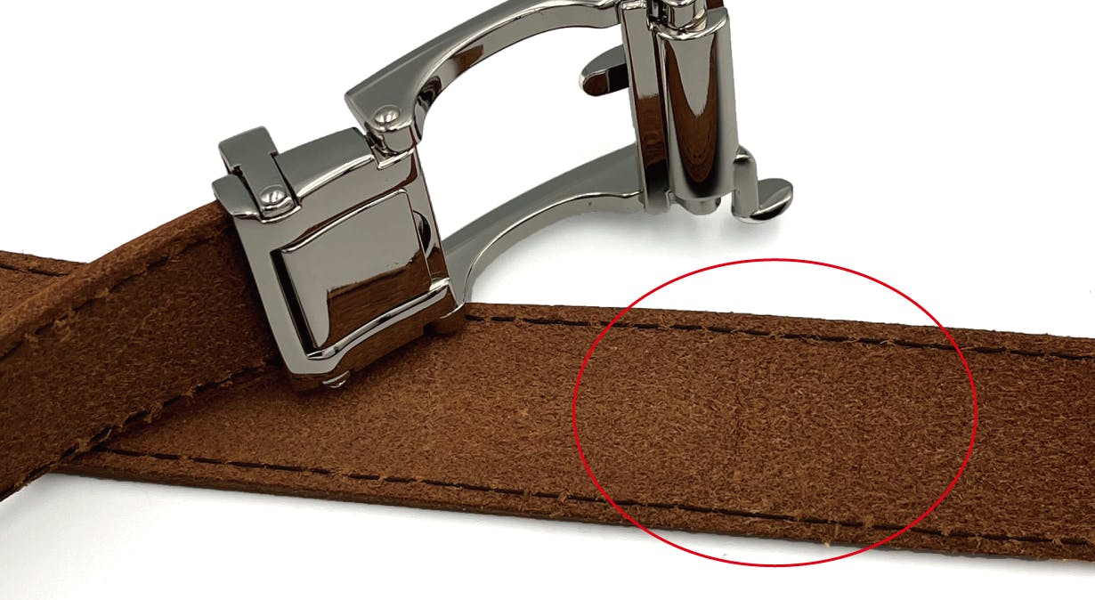 バックルの樹脂ストッパーでベルトを止める構造上、ベルトの裏面にストッパー跡がつきます。