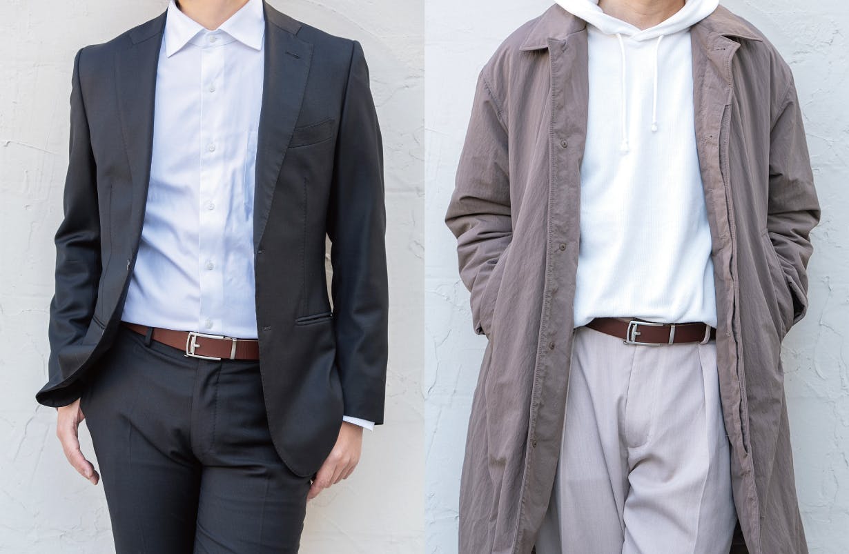 ビジネスではシャツをタックインし、ベルトを装着することが大半です。