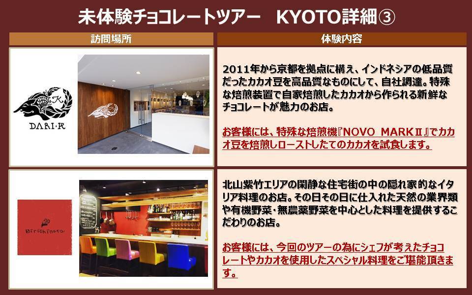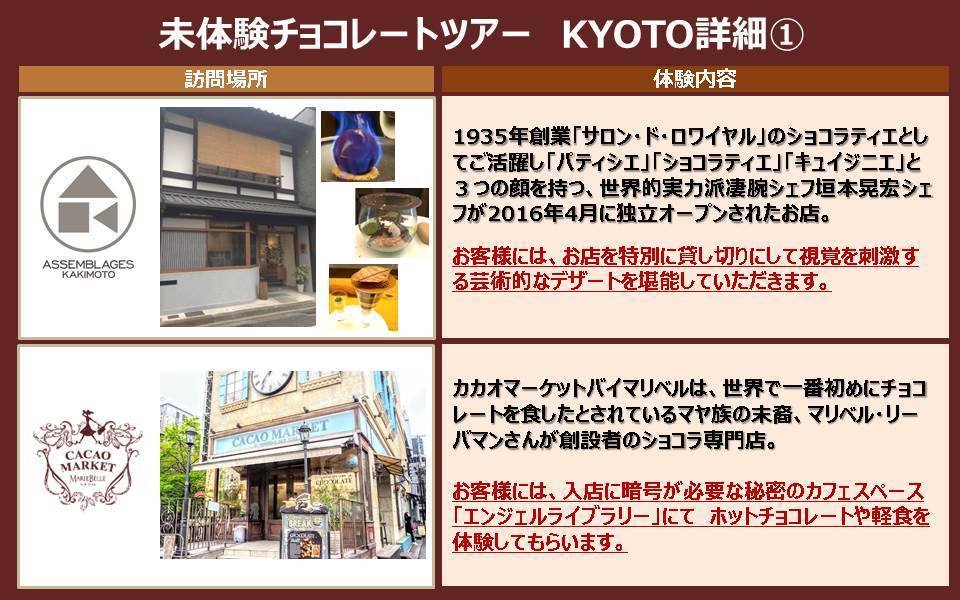 京都にあるチョコレートショップ様のご協力の元、今回だけのプレミアムな“未体験チョコレートツアー”が完成いたしました。