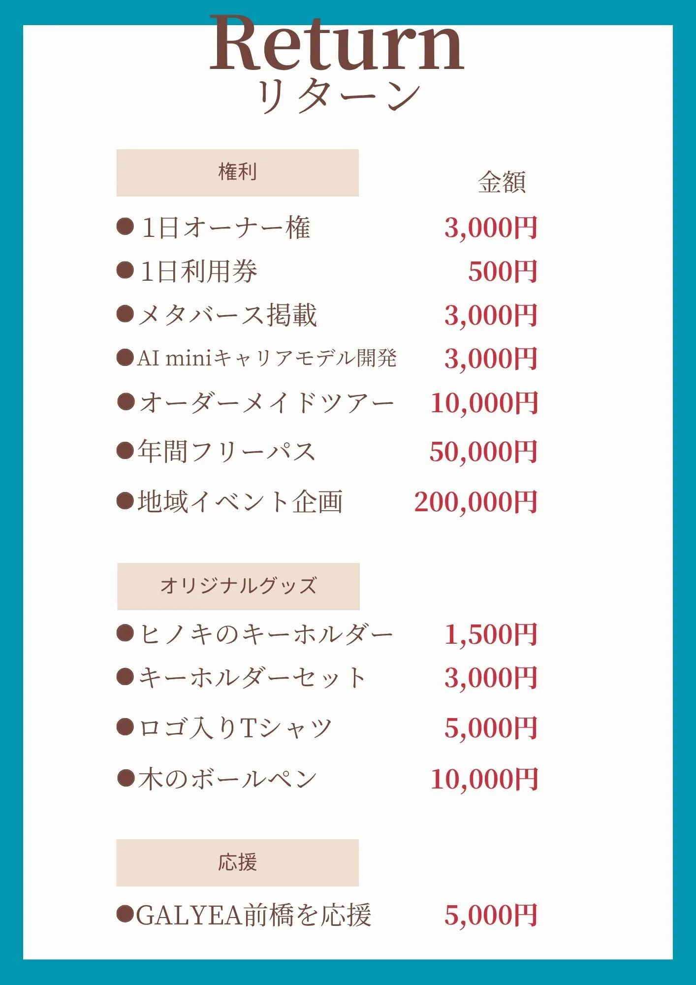 誰でも1日だけGALYEAのオーナーになれる 「1日オーナー権」 を用意しました。
