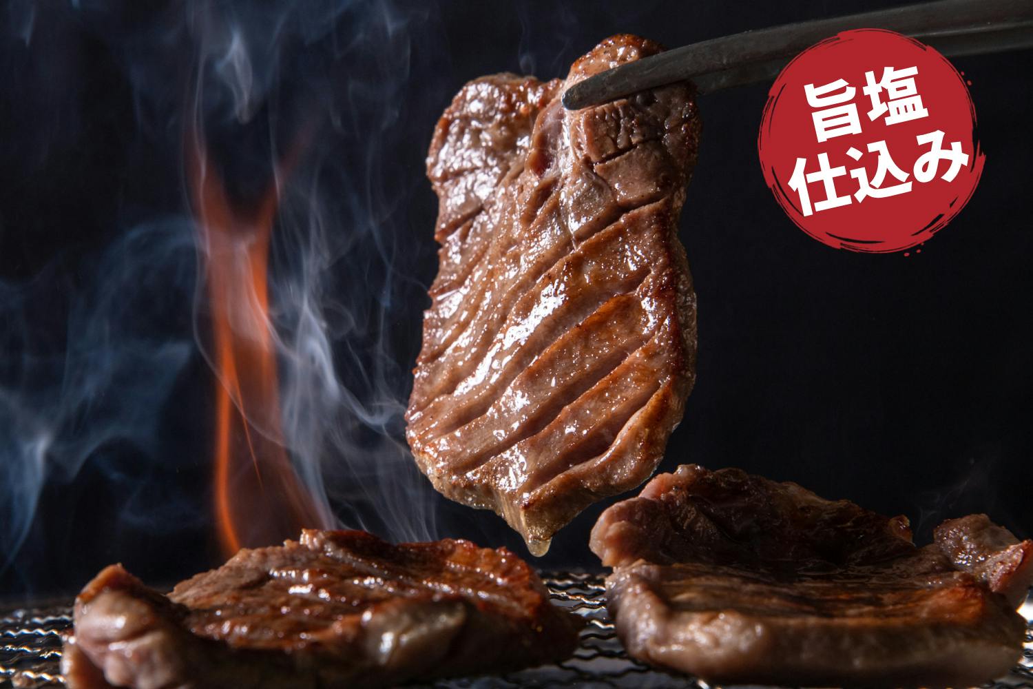 ヘルシーで旨みのある牛タンの中でも、「仔牛の牛タン」は柔らかく、厚みが約12mmもあり、ジューシーで希少価値の高いお肉です。旨み成分を配合した塩に漬け込み、味わいを引き出した旨塩仕込みです。