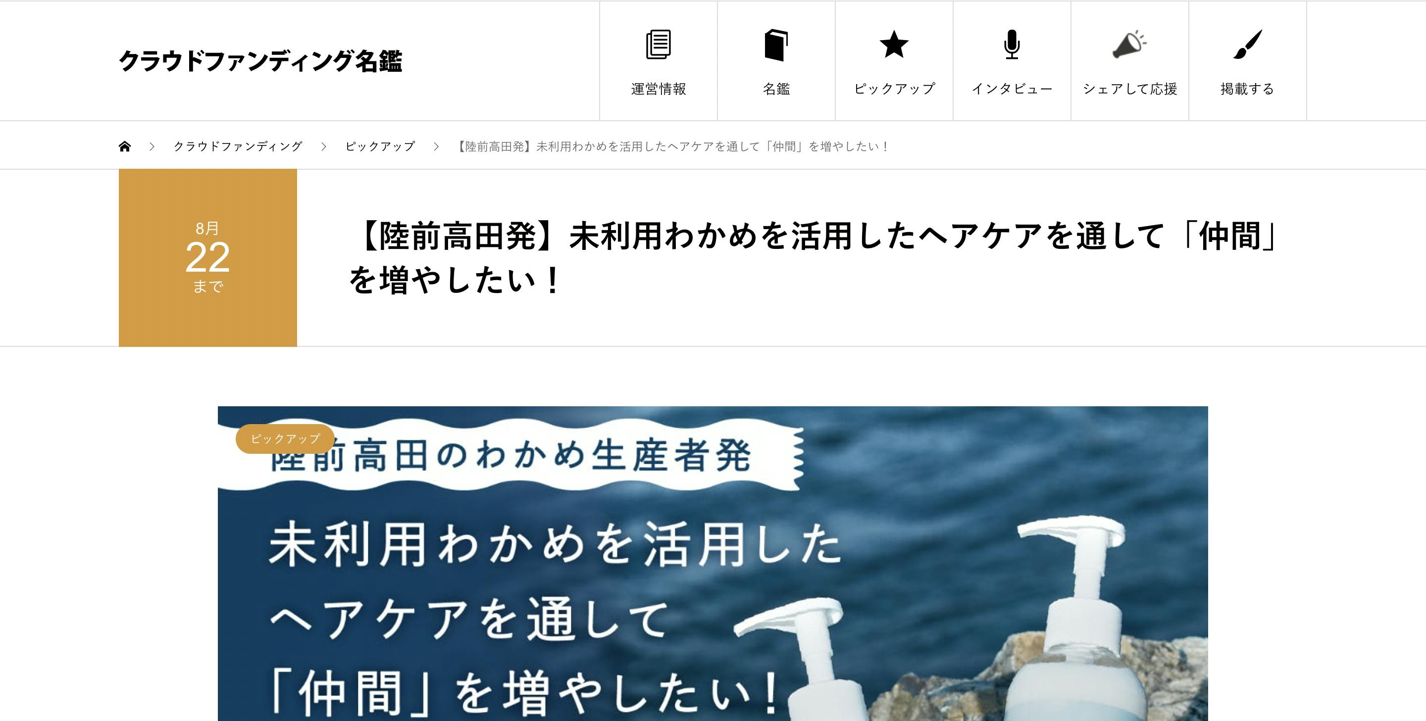 クラウドファンディングに挑戦する会社や人を応援する『クラウドファンディング名鑑』に、uraのクラウドファンディングページを掲載いただきました!