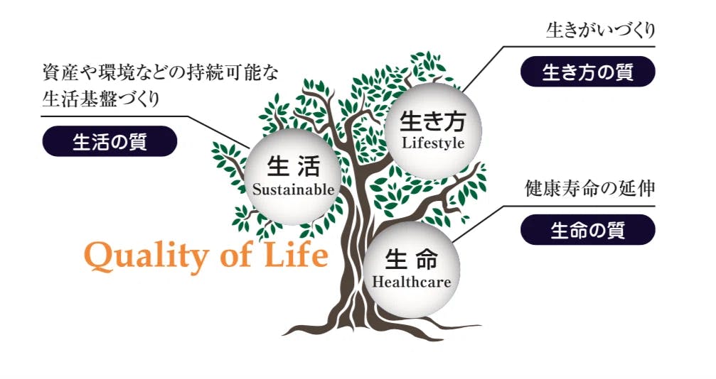 このQOLを高め、身体的にも、精神的にも、そして社会的にも、すべてが満たされた状態である『ウェルビーイング(well-being)』につなげていこうというのが、この法人の目的です。