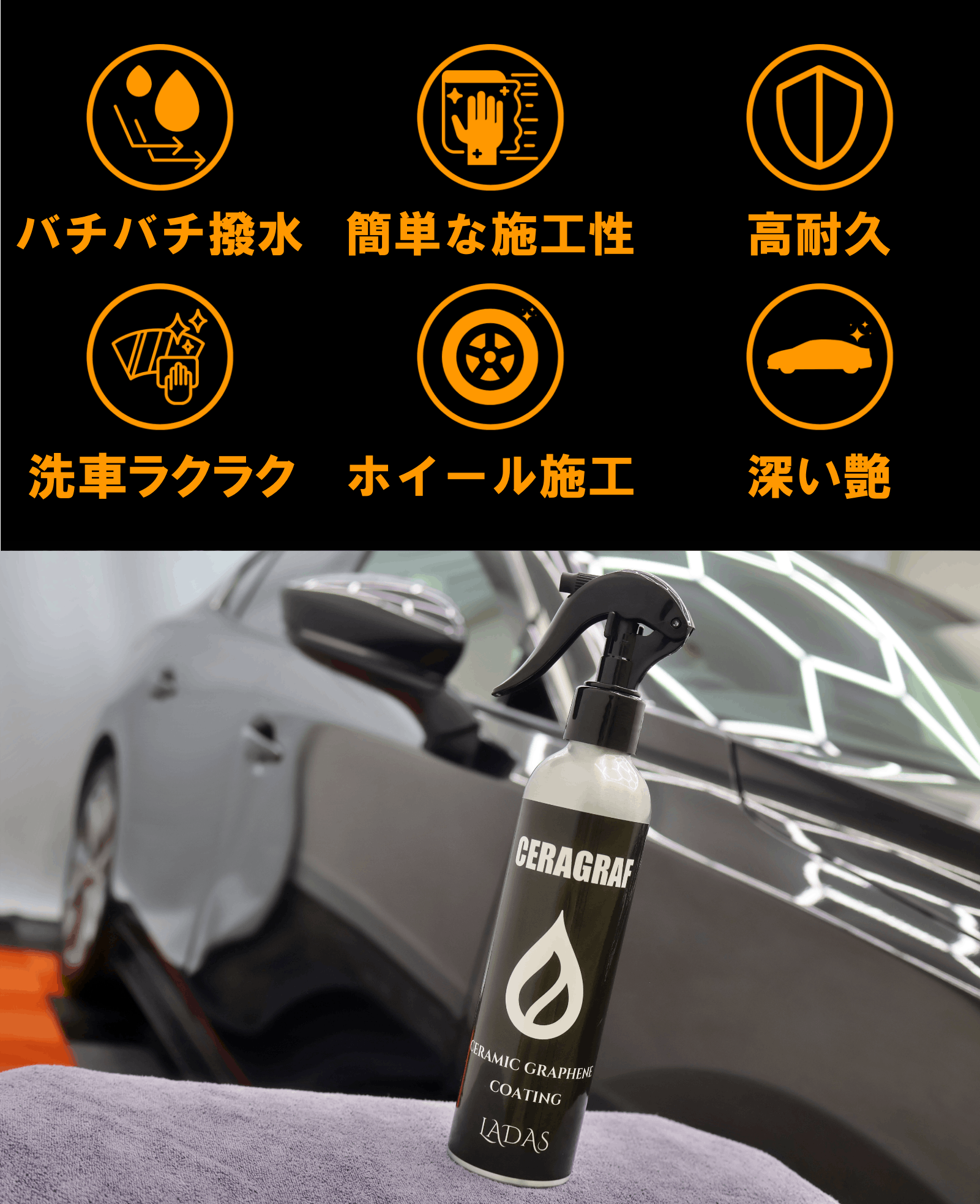 プロ級の撥水をただ拭くだけで実現可能な「CERAGRAF」をお楽しみください。