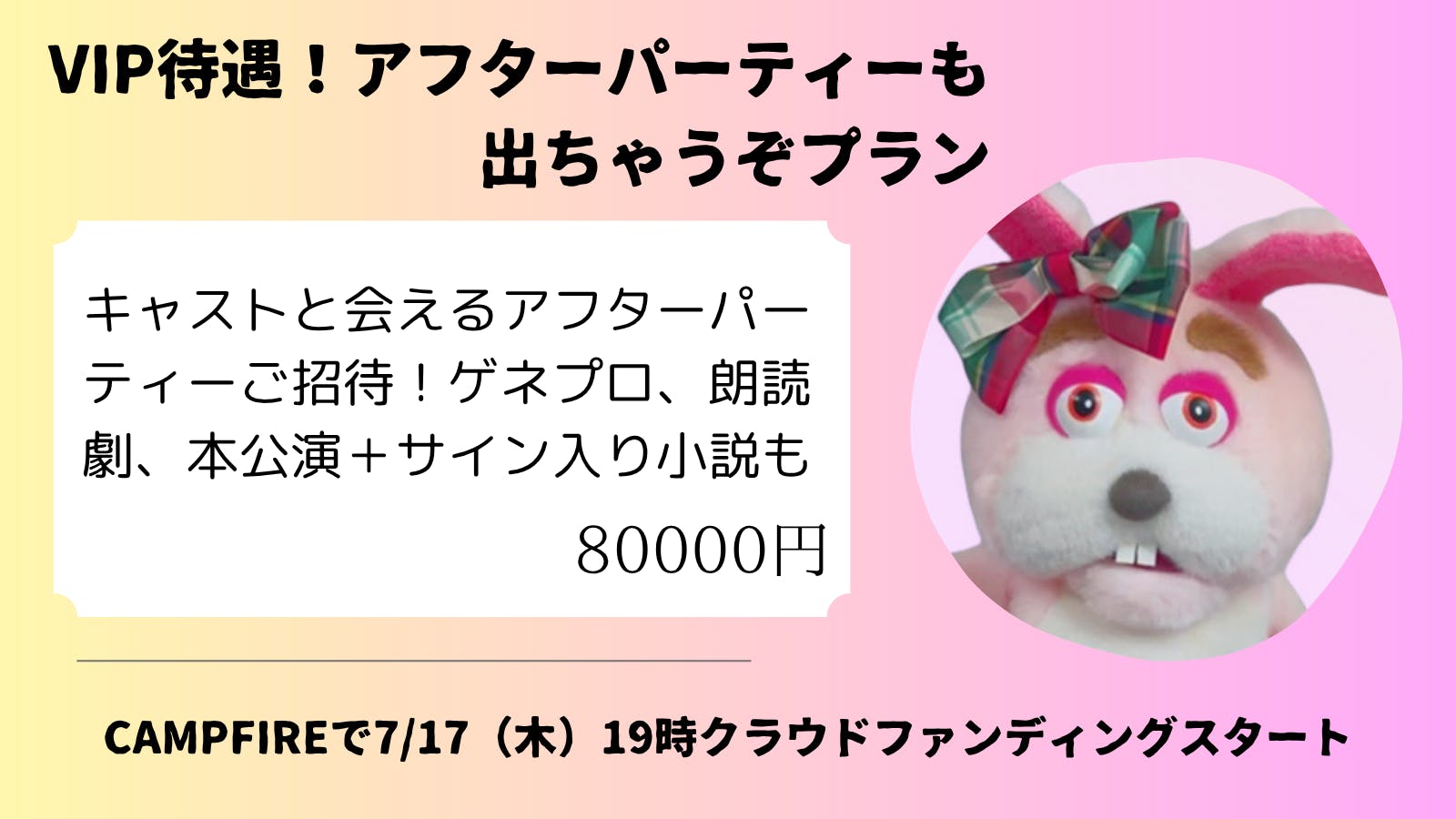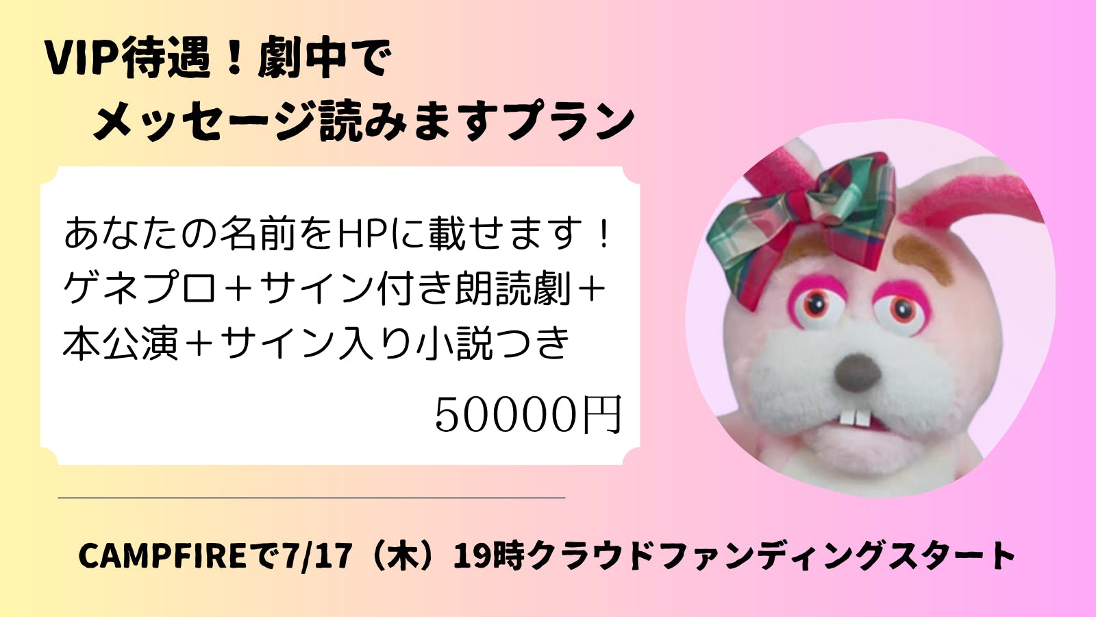2025/08/31 20:53あと3時間で1ヶ月半開催してきたクラウドファンディングが終了となります。10月17日から19日に開催されるファントム座旗揚げ公演『ハロウィンイマーシブシアター魔女たちの奇妙な晩餐会』チケットはもうご購入いただいたでしょうか?あすの朝7時から一般発売を先着順で始める予定ですので、既にお申し込みの方は今日までにチケット予約サイトから日にちをおさえていただけると助かります。そして、クラウドファンディング限定のさまざまなプランも再販予定はないのでぜひお手元に!サイン入り小説、写真、劇中メッセージを読むプラン、ゲネプロ&朗読劇参加プラン、稽古や会議へ参加プラン、アフターパーティー参加プラン、キャストがサプライズお祝いをお手伝いするプラン、栗林さみが支援者のために小説を一冊各プラン。いろいろとあります。どうぞあたたかいご支援をお願い致します。10月の公演や、これからのファントム座の活動資金のために使わせていただきます。懐かしい画像をあげさせていただきました。今は扉絵を変えて、ネクストゴールに向けての画像になっておりますので。ネクストゴールももしかしたら見えてくるかもしれません……SNSでの#ファントム座の拡散も何卒よろしくお願いいたします。 もっと見る