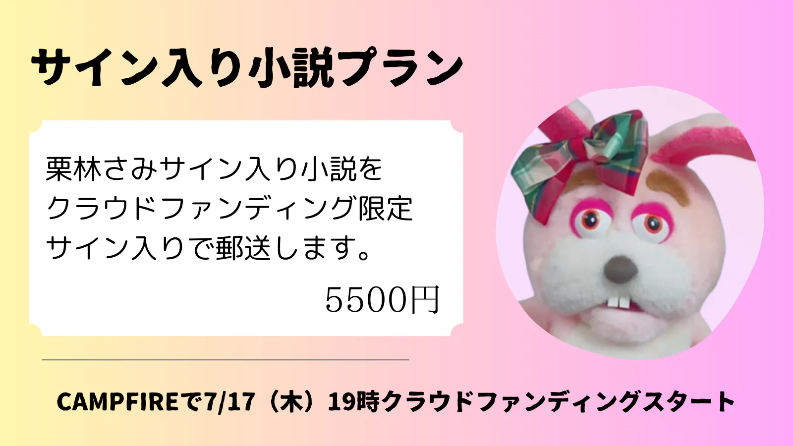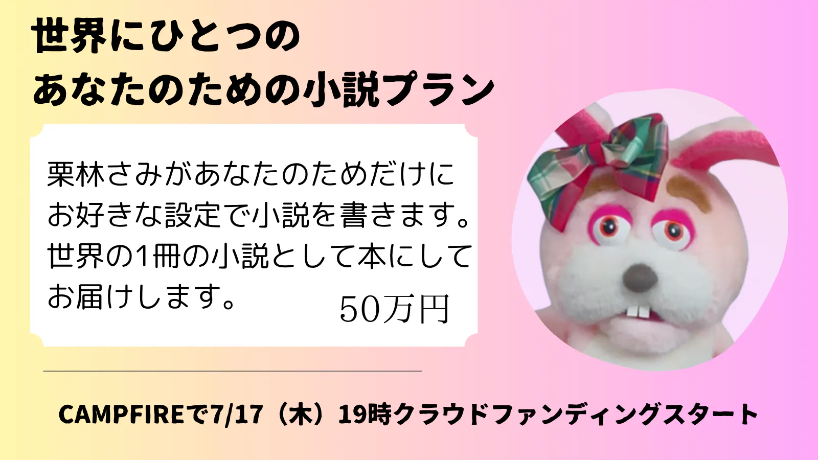 今回のリターンの目玉のひとつは、クラウドファンディング限定での返礼品である栗林さみサイン入り書き下ろし小説です。今回の企画のために書き下ろした、私たちの劇団の主軸となるファントムにまつわる始まりの物語です。
