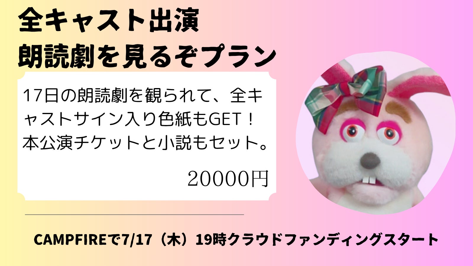 7/17現在、当日券の販売も予定していますが、濃厚なイマーシブ体験をしていただけるよう1回につき最大35人が入場可能となっているため、クラウドファンディングのみで観劇チケットが売り切れとなる可能性があります。