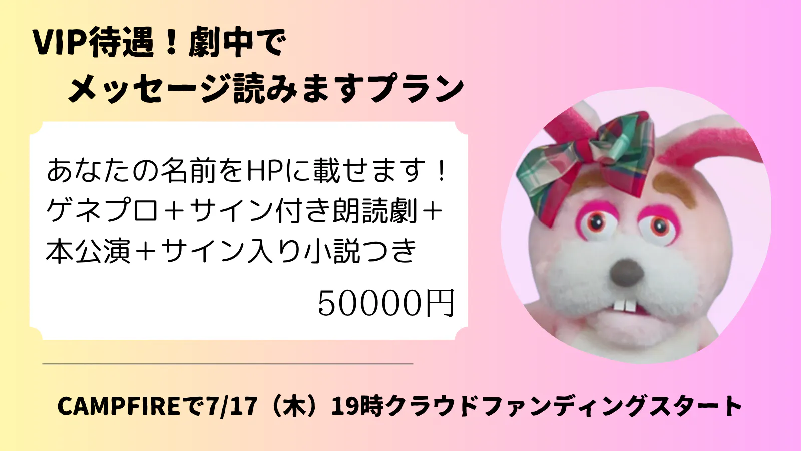 このクラウドファンディング限定で超先行販売となる本公演チケットはお見逃しなく!