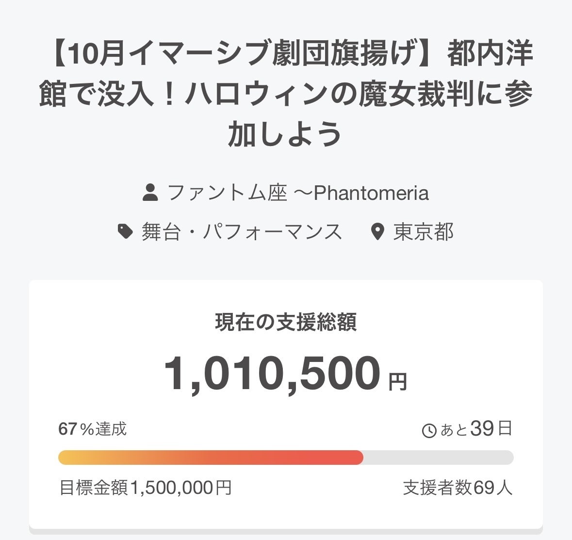 ぜひ #ファントム座 をつけて各SNSでこのクラウドファンディングの拡散もお願いします。