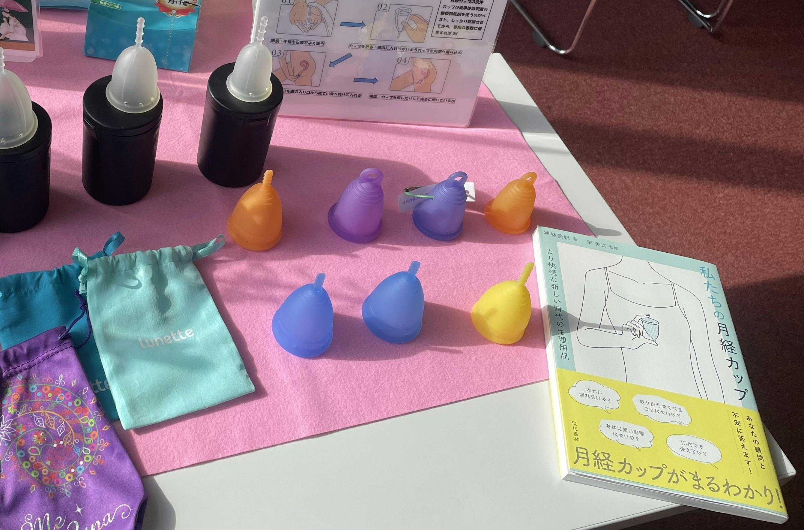 月経カップの書籍も一緒に置き、よりわかりやすい紹介もできるようにしています。