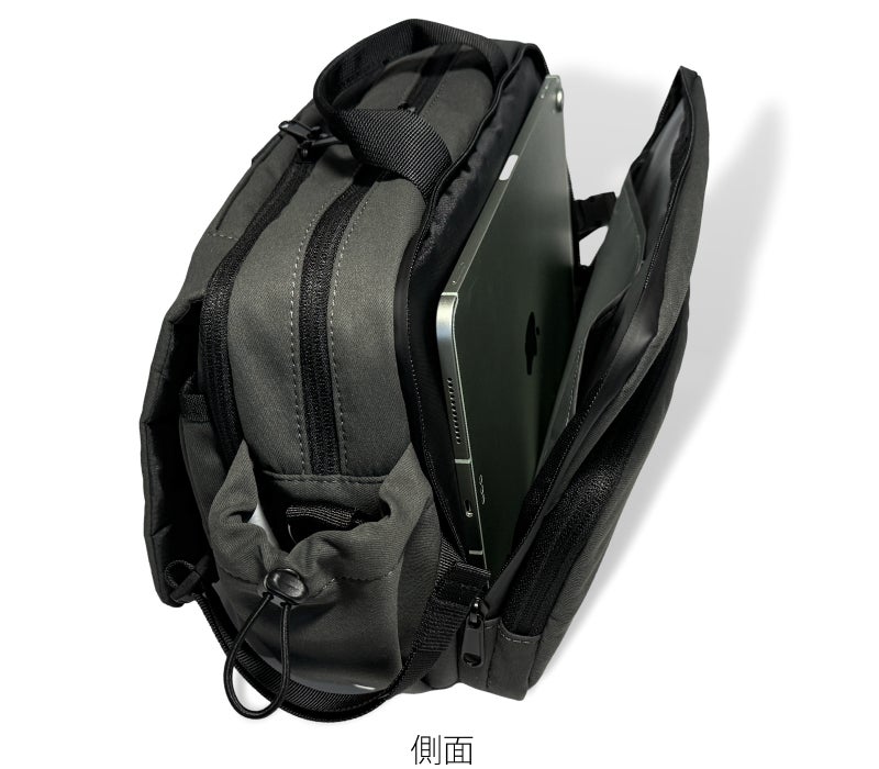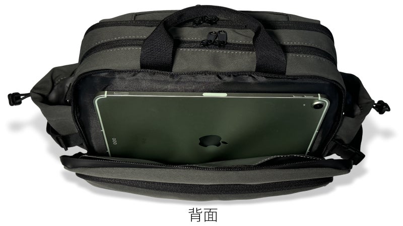 バッグ背面側にある5つ目の収納スペースは、ウレタンクッションを内蔵したタブレット用収納ポケットです。