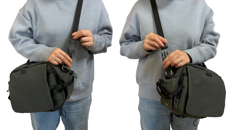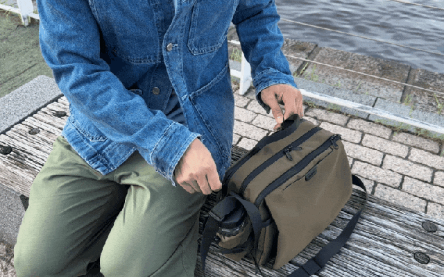 カバンの左右両方にバックルがあるので、左右関係なくスムーズに着脱が可能です。