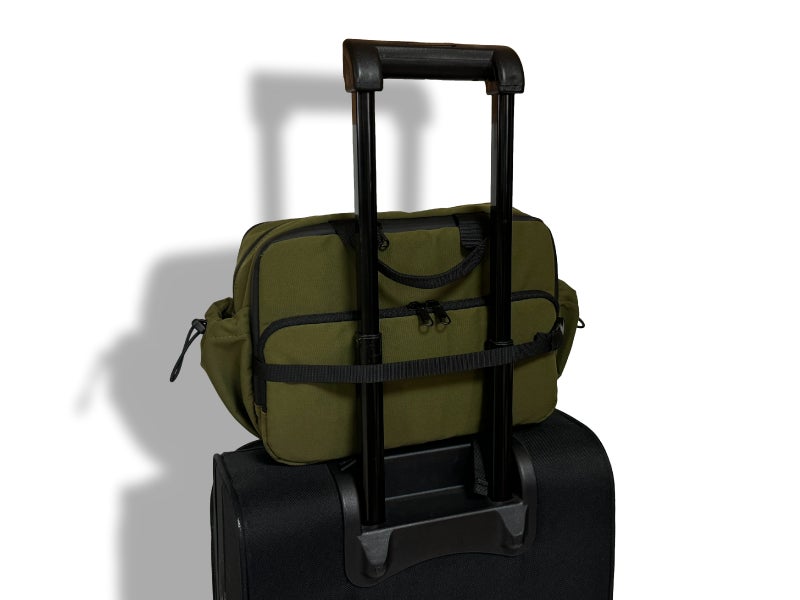 一方、背面側で繋いだストラップはキャリーホルダーとして使えるので、旅行の際もとても便利です。