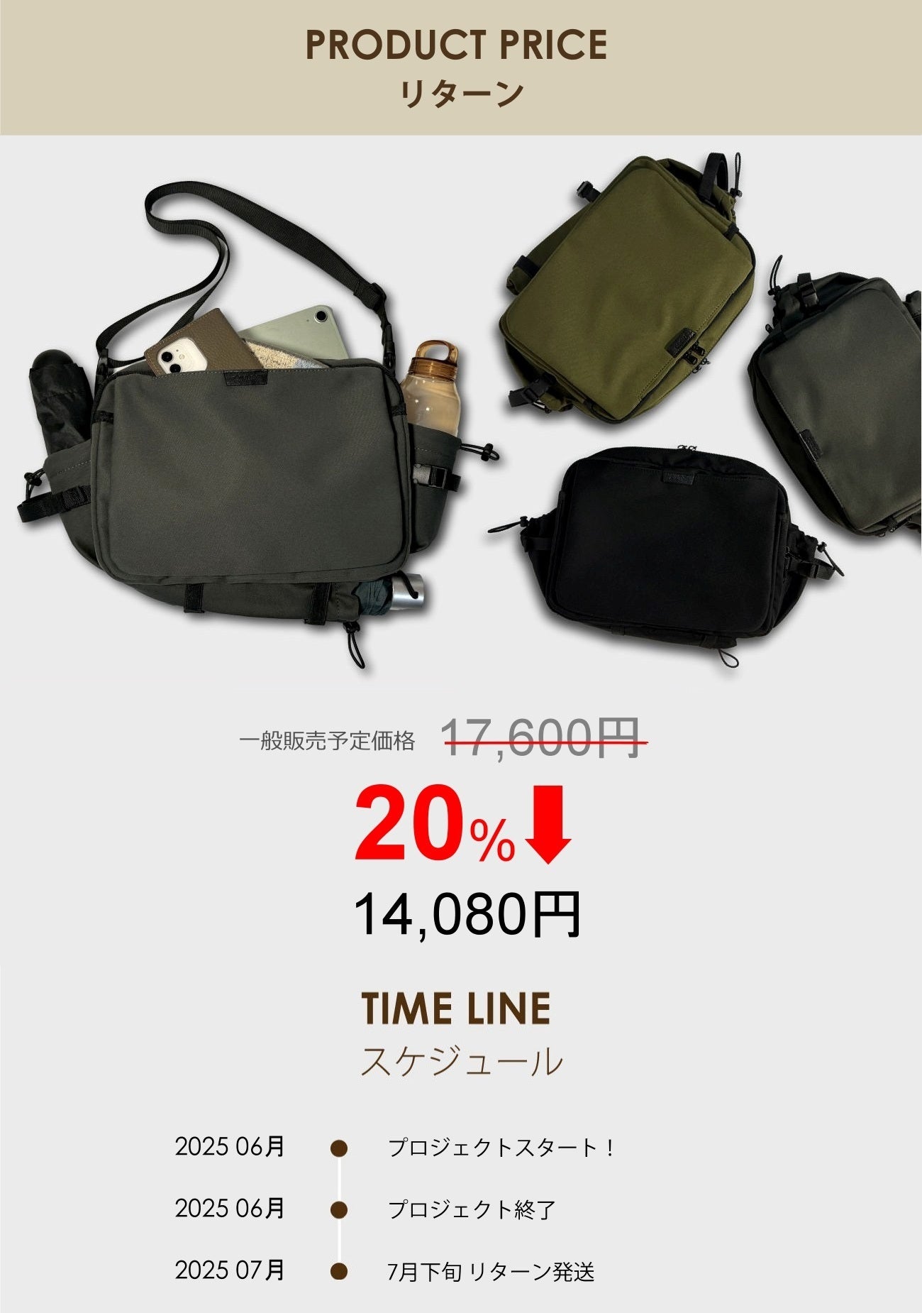 2025/07/18 16:45ご支援の皆さまこんにちは。 お世話になっております。この度は、ショルダーバッグ「CONME」を応援購入いただき、誠にありがとうございました。本日は、発送予定についてご報告させていただきます。商品は、無事に工場より発送され、近日の入港を予定しており、輸入業務通関、及び第三者検品を行い、7月25日(金)~26日(土)に、皆さまへクロネコヤマト宅配便で発送予定でございます。 この度は、長らくお待ちいただきありがとうございました。 お届けまでもうしばらくお待ち下さいませ。 発送後、改めて発送完了のご報告をさせていただきます。 どうぞ宜しくお願い致します。ありがとうございました。スタッフ一同 もっと見るプロジェクト終了まで残り2日!