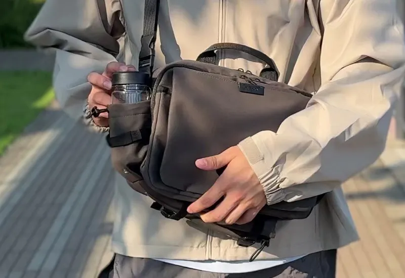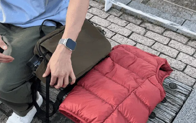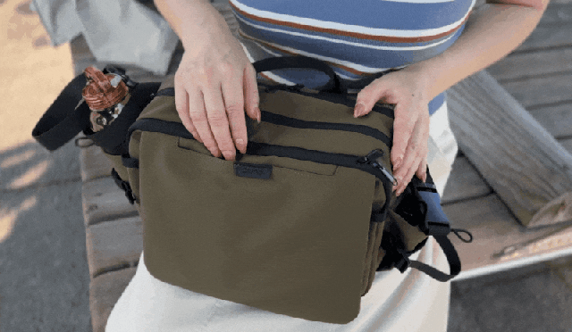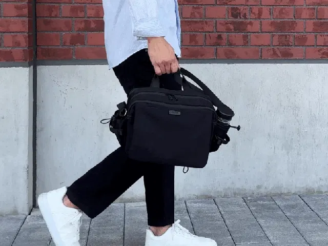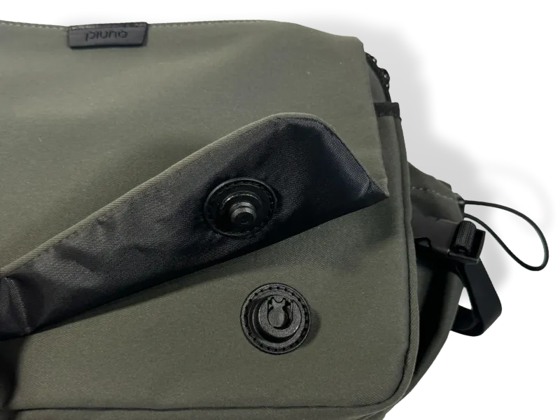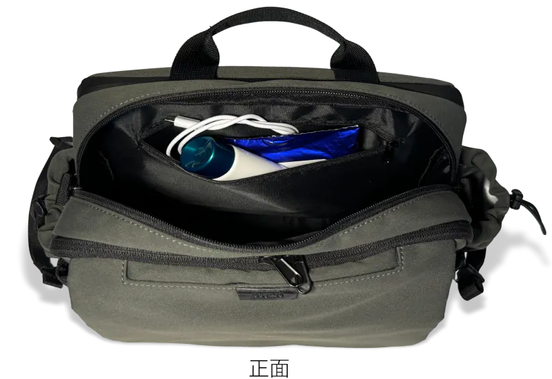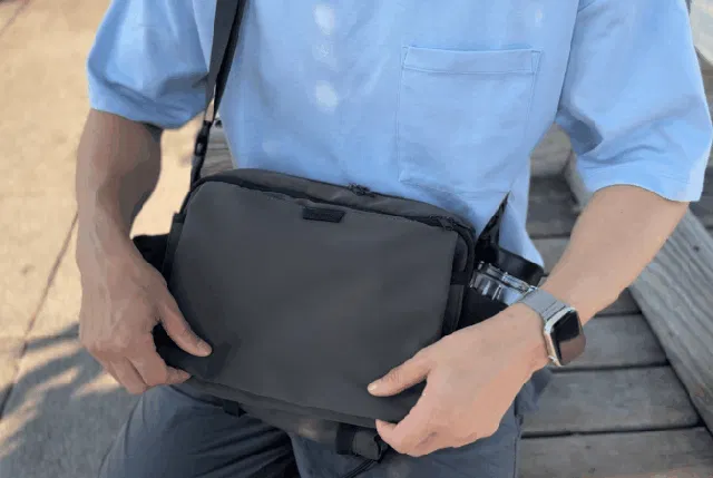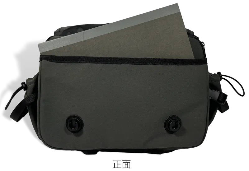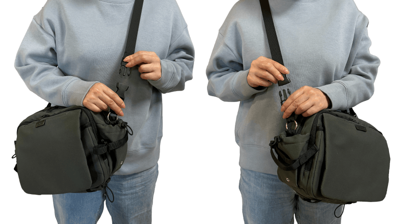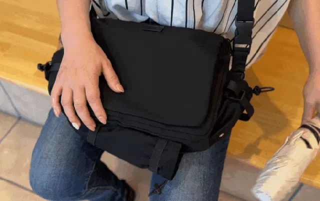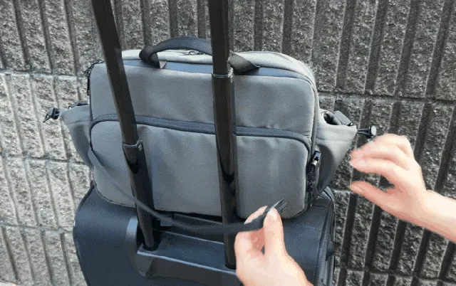 カバンの左右両方にバックルがあるので、左右関係なくスムーズに着脱が可能です。