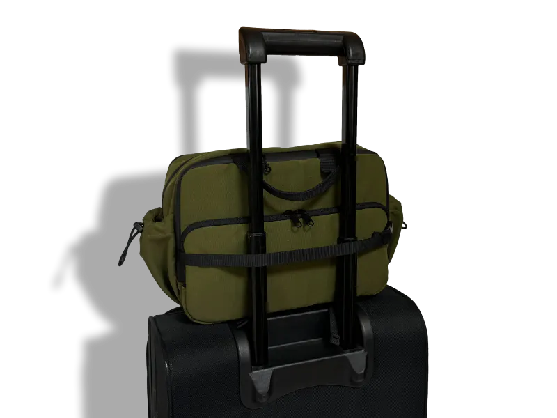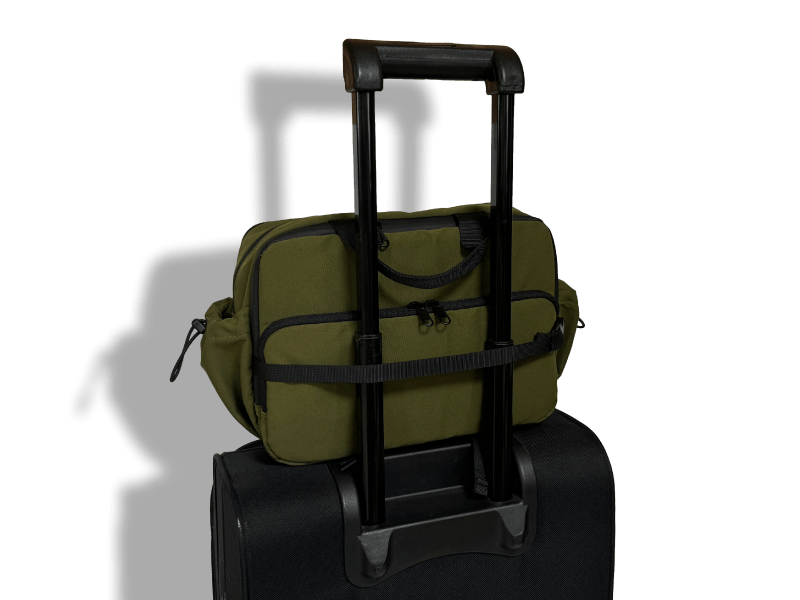 一方、背面側で繋いだストラップはキャリーホルダーとして使えるので、旅行の際もとても便利です。