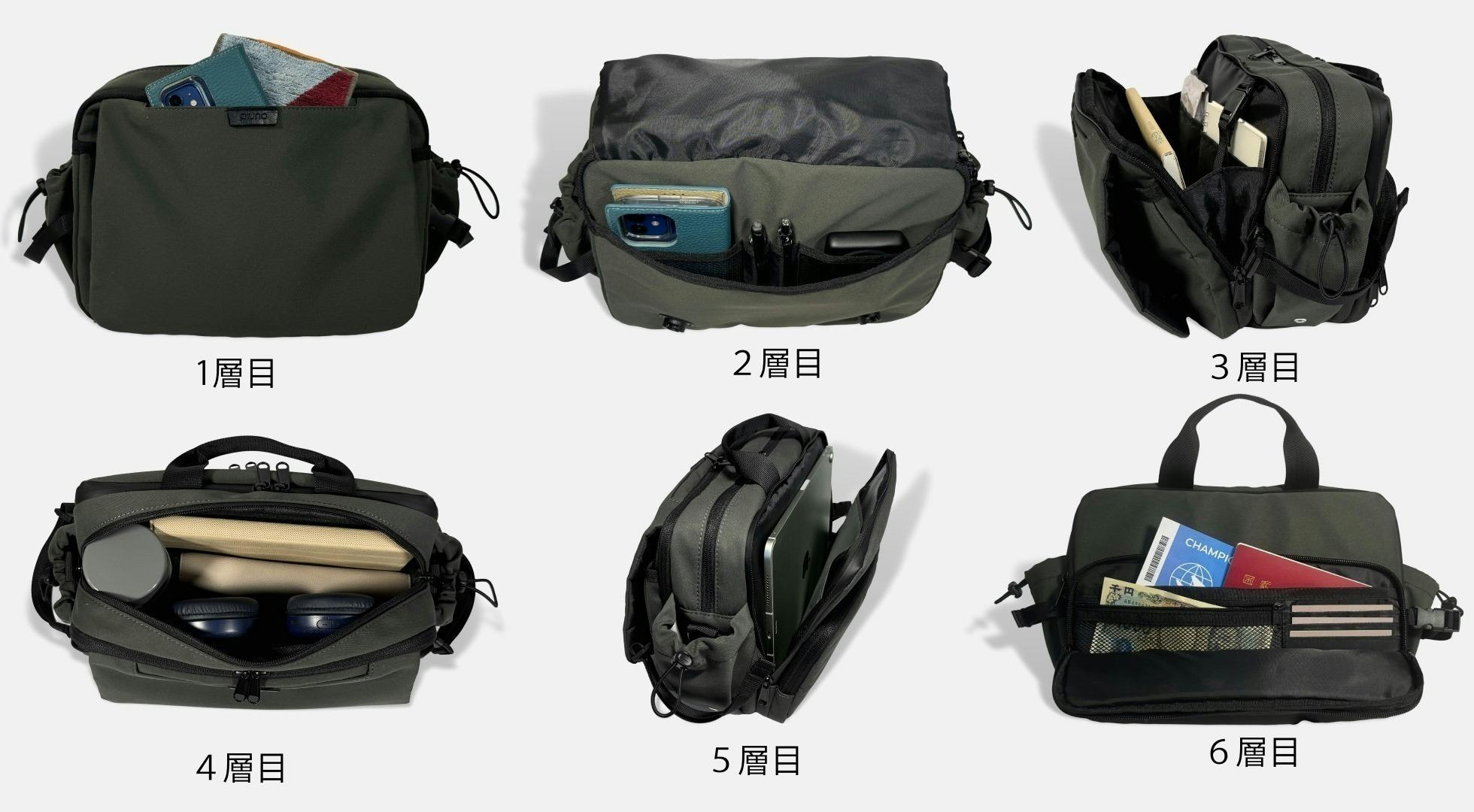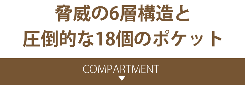 6層目のポケット数:メッシュファスナーポケット×1、仕切りポケット×1、カードポケット×3