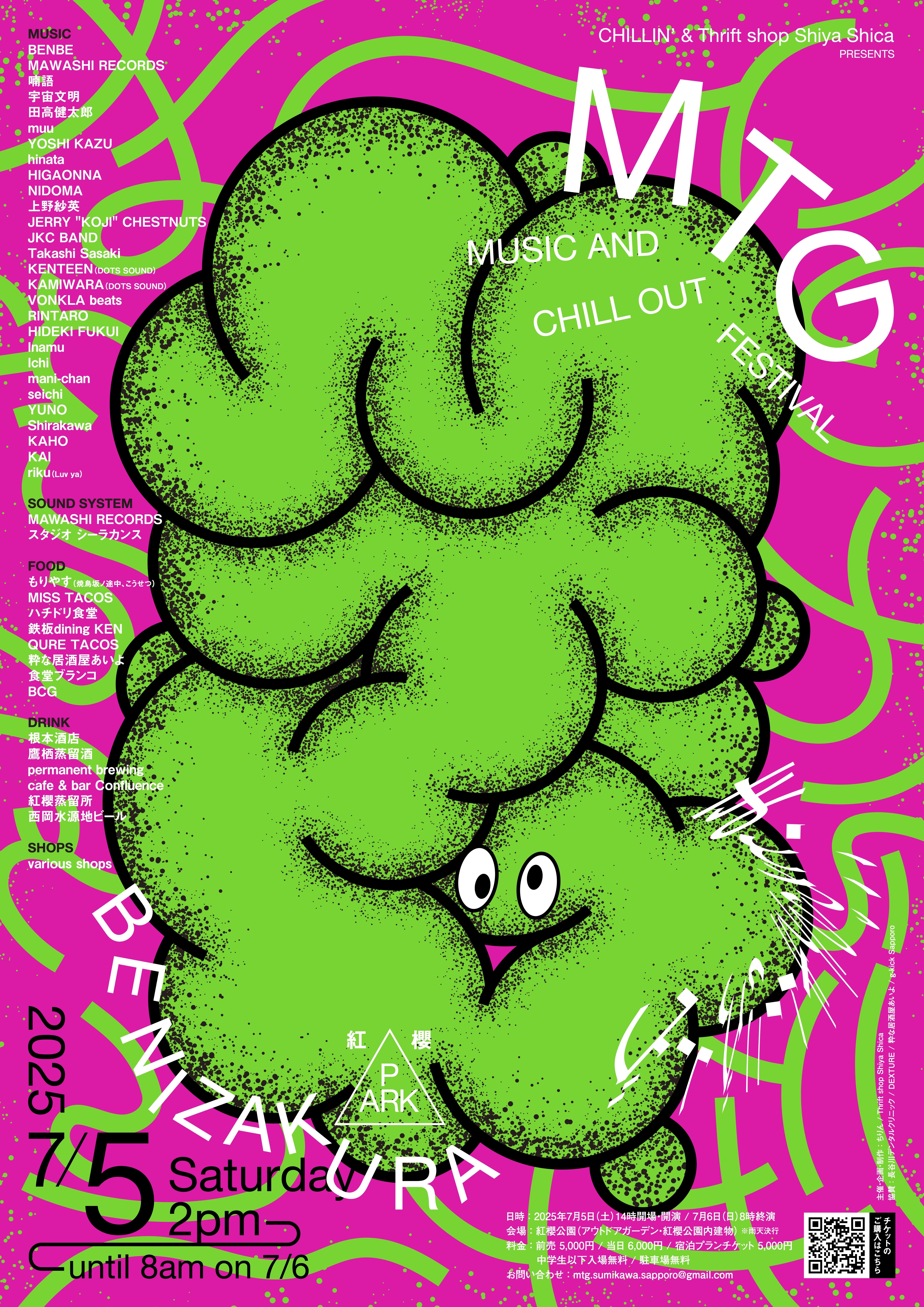 私たちは、2025年7月5日(土)〜6日(日)に札幌市南区澄川の紅櫻公園キャンプ場で開催される野外音楽フェス「MTG〜まーいいからテキトーにグルーヴ〜」の実行委員会です。