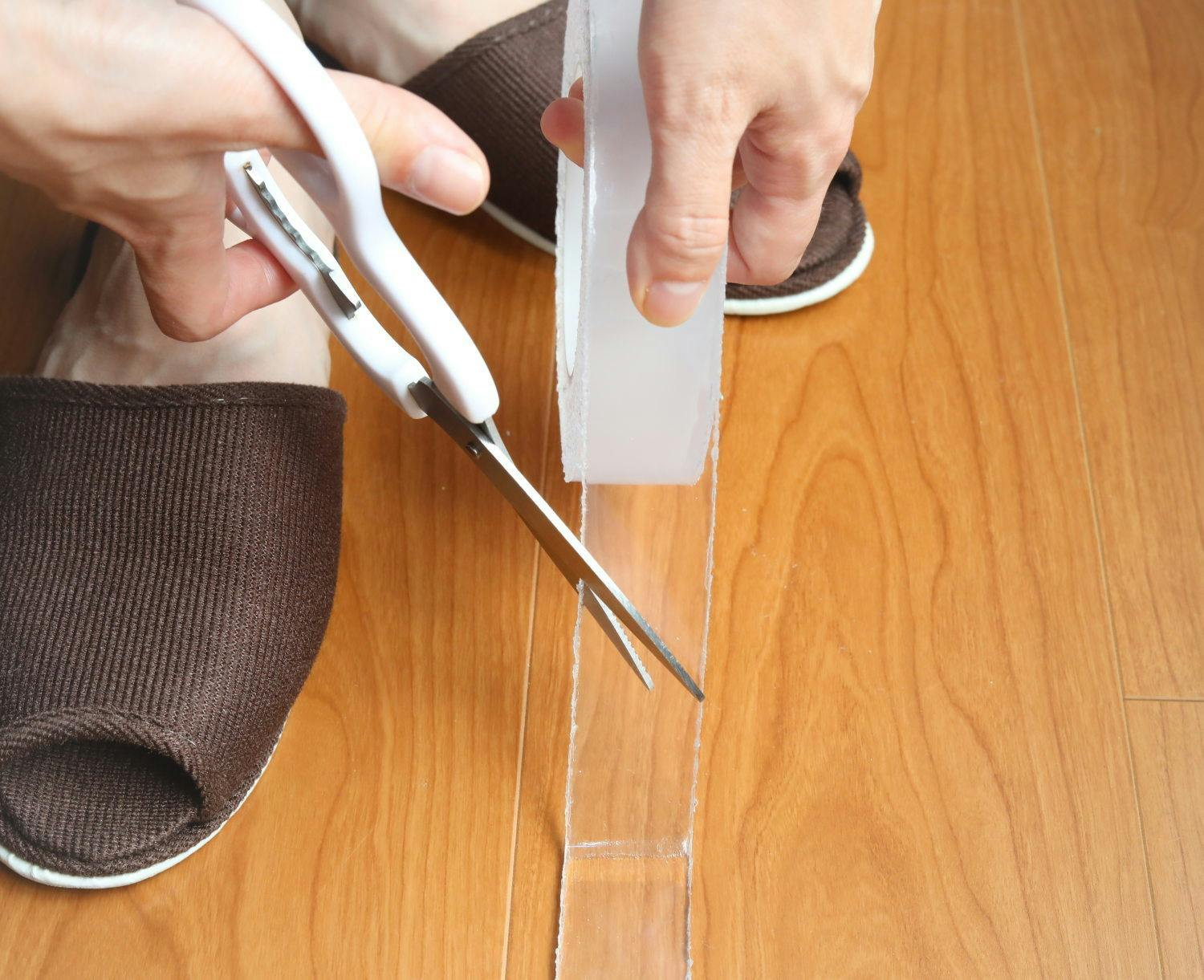 強力な粘着マットをテープ形状にしたため、どのようなサイズ形状でもカットできます!
