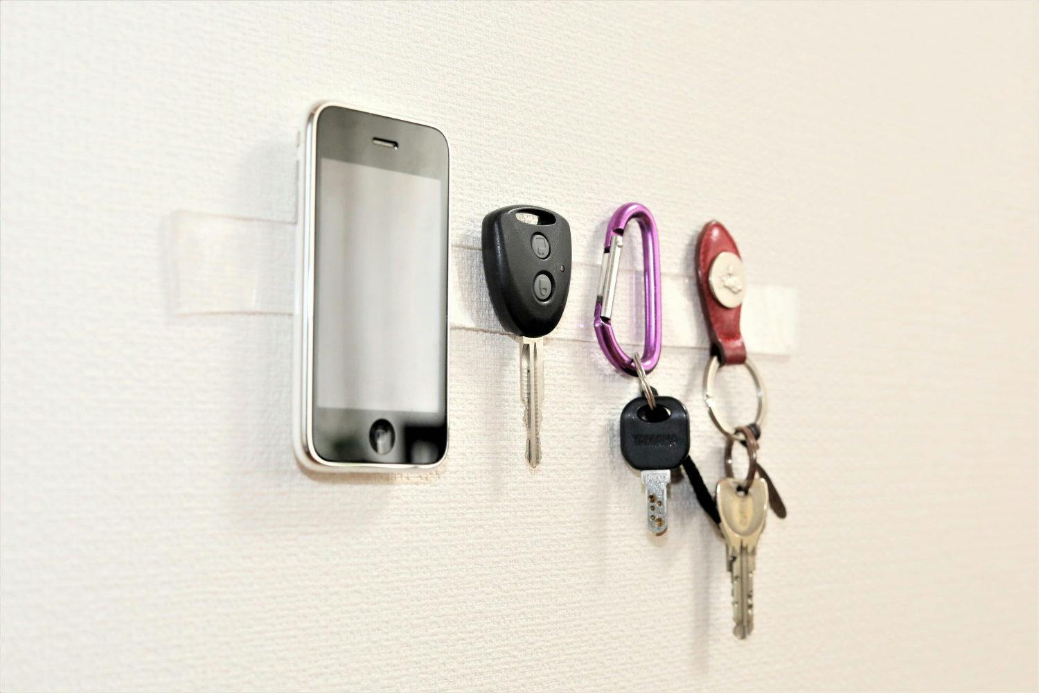 スマホと鍵も壁に貼り付け!