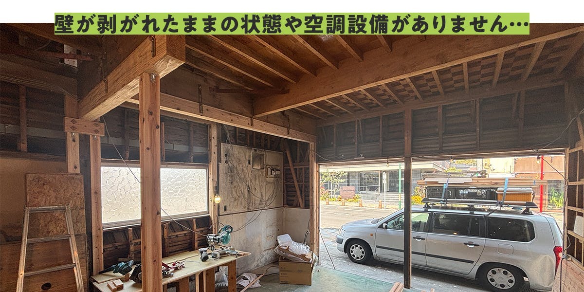 しかしながら、1階部分は一部壁を剥がしたままの状態になっていたり、空調がなかったり…。完成というにはまだまだ程遠い状態となっております。今回のクラウドファンディングでは、今年度中に1階部分の完成を目指し、いただいた支援を元手に原材料の仕入れや空調等の購入、工事費等に活用させていただき、DIYワークショップも交えながら改修を進めていく予定です。