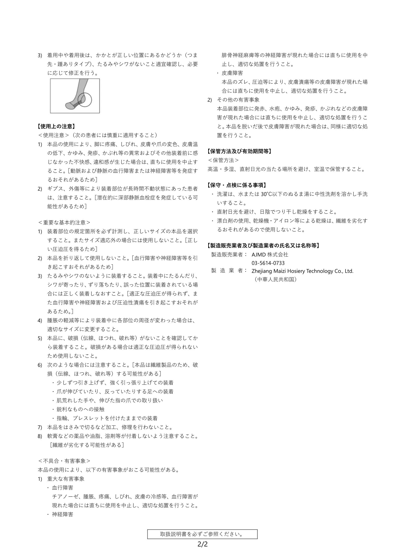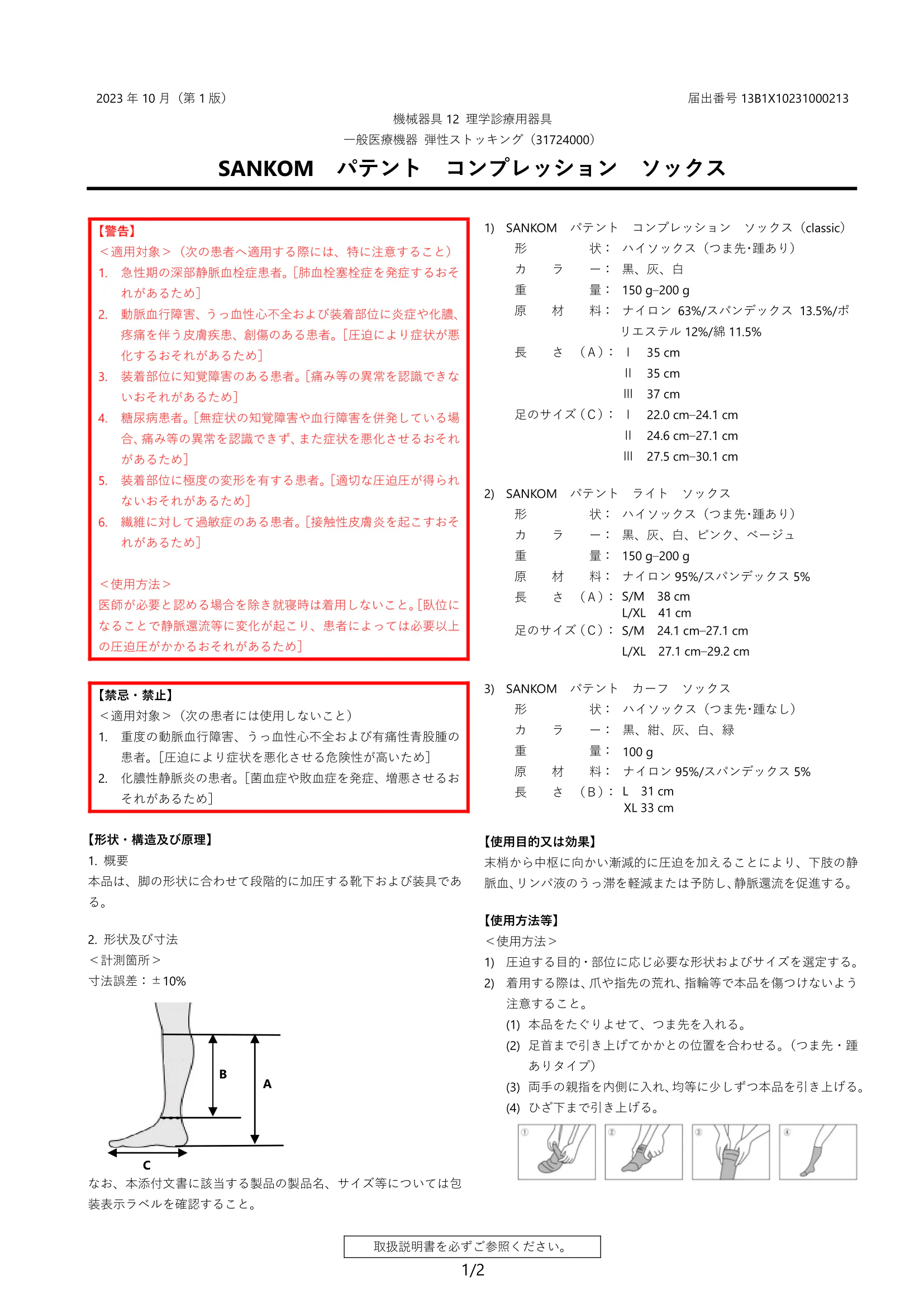 添付文書には、禁忌・禁止事項、警告、および履き方等の詳しい情報が掲載されています。ご支援をご検討いただける際、ページ一番下に添付されている添付文書を必ずご一読ください。