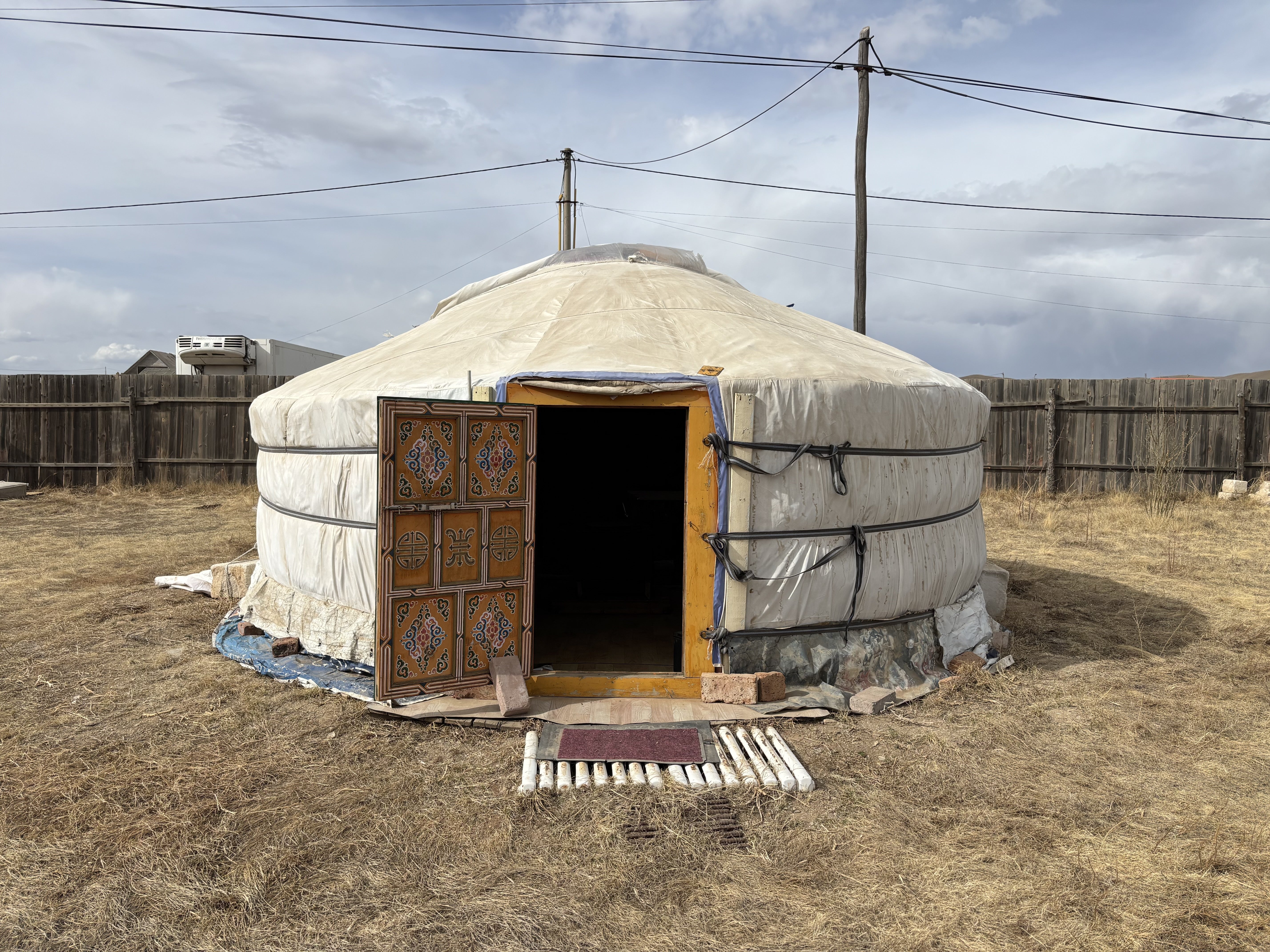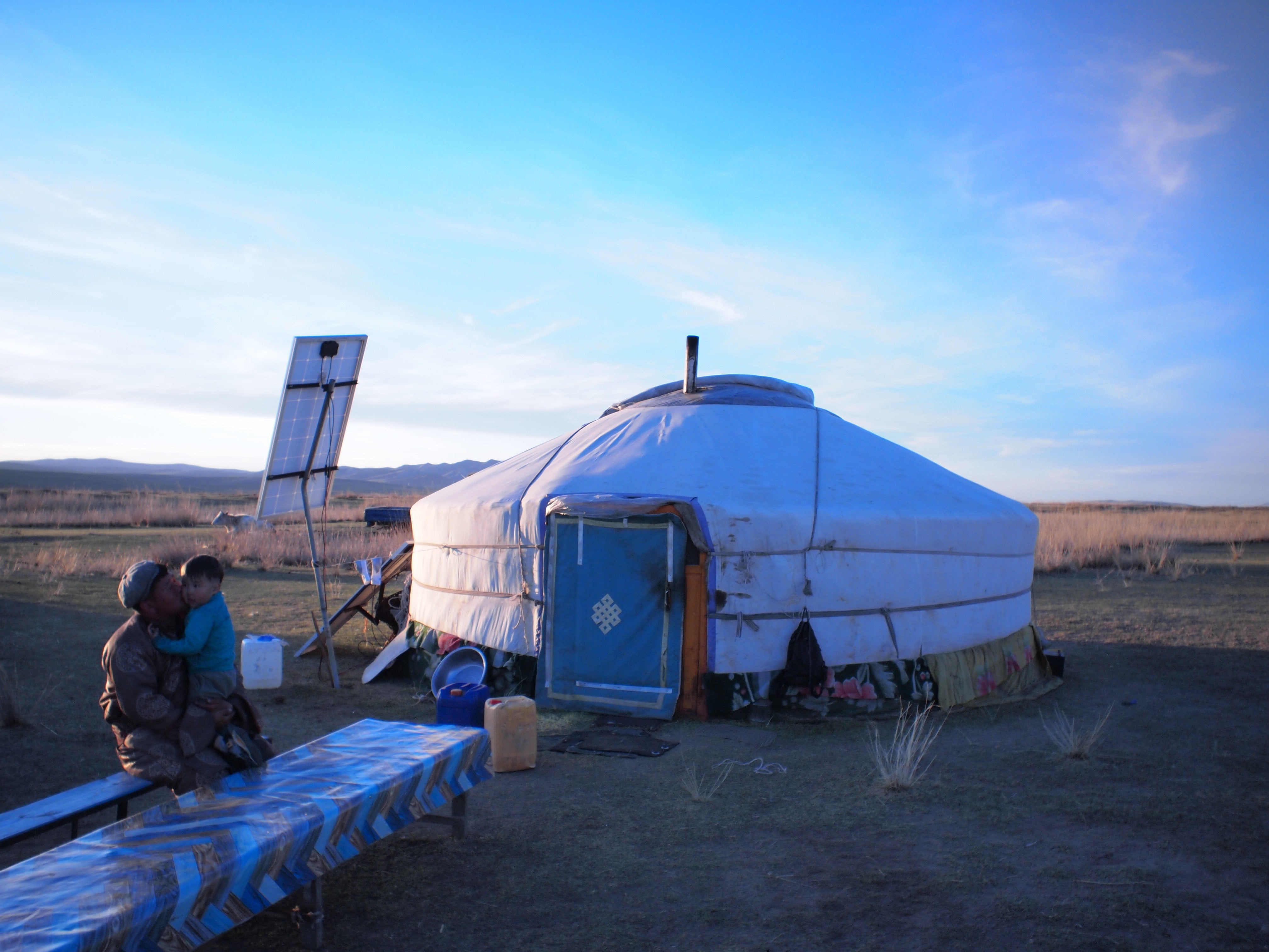 これは実際に体験してみないと伝わらないかも知れませんが、ゲルの入り口(扉)はとても低く、屈んで入ります。