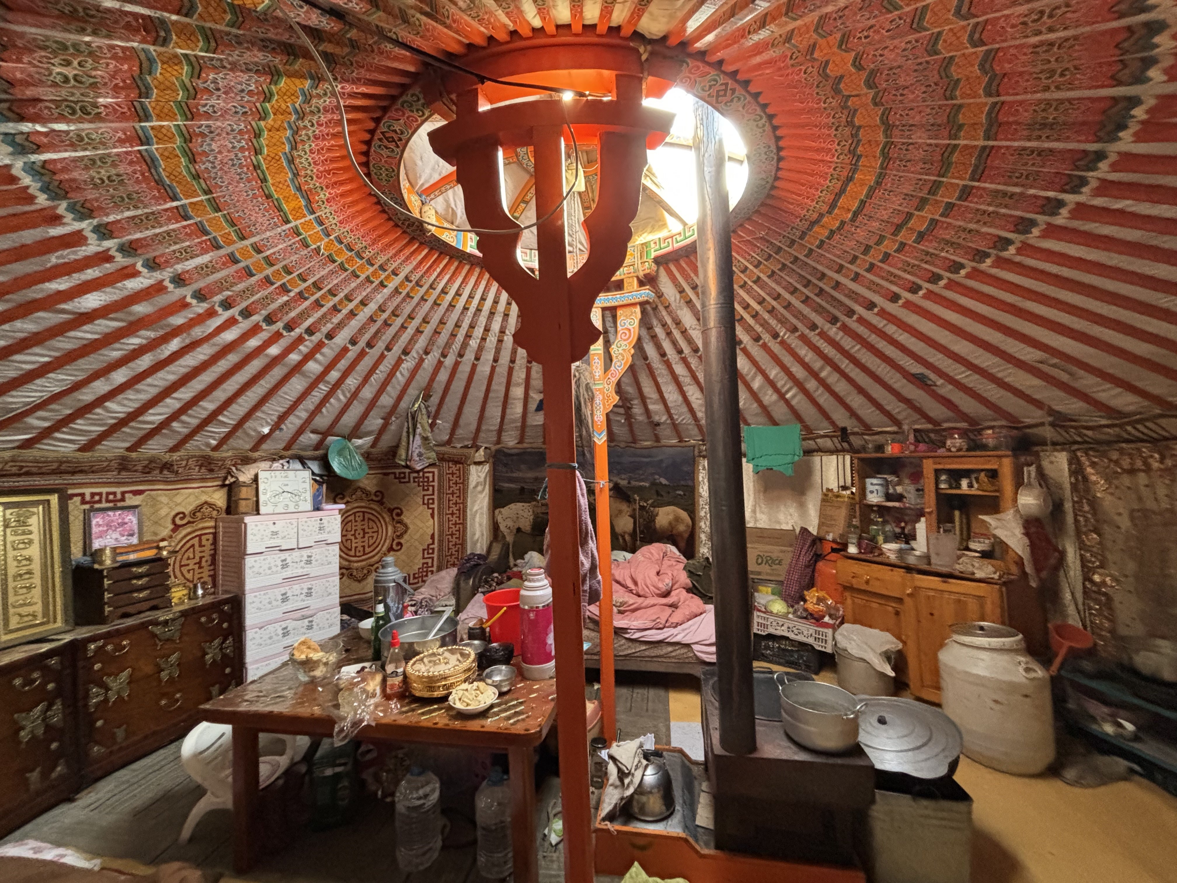 そんなゲルでは風が強い日にはゲル全体が受ける風を感じながら、よく晴れた日はゲルの天窓から覗く星空を眺めながら眠ります。