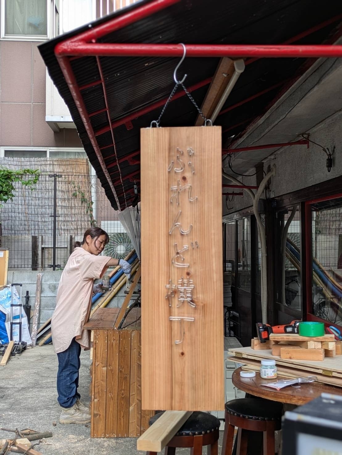 制作場所は、以前改装をさせていただいた大阪の「ぶれんど横丁」さんと、奈良県の下市町にある廃校を使わせて頂けないかお話をしているところです。
