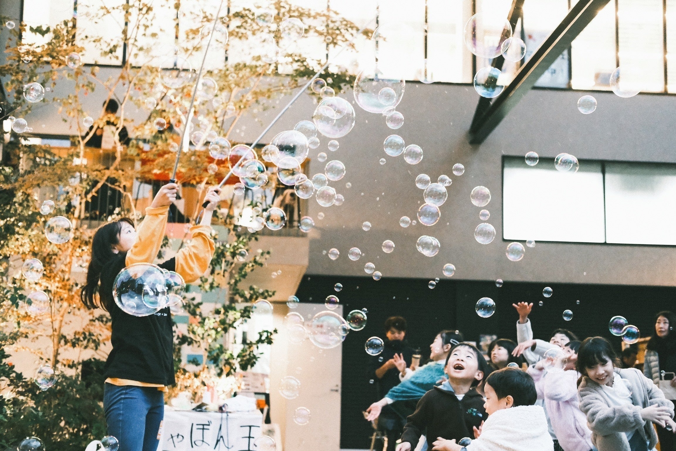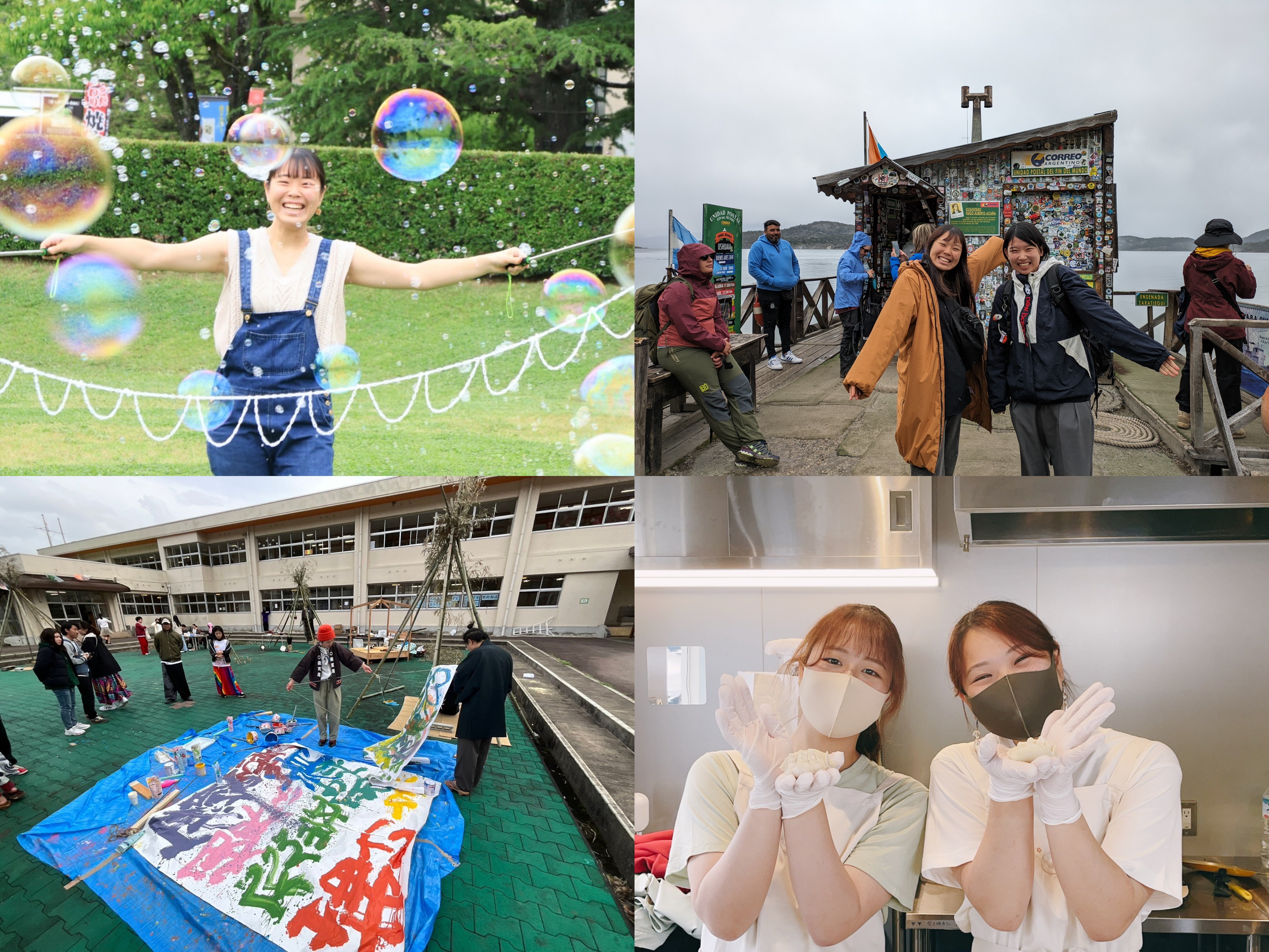 餃子屋さんをやったり、しゃぼん玉のパフォーマンスをしたり、日本や世界のいろいろなところを訪れたり。