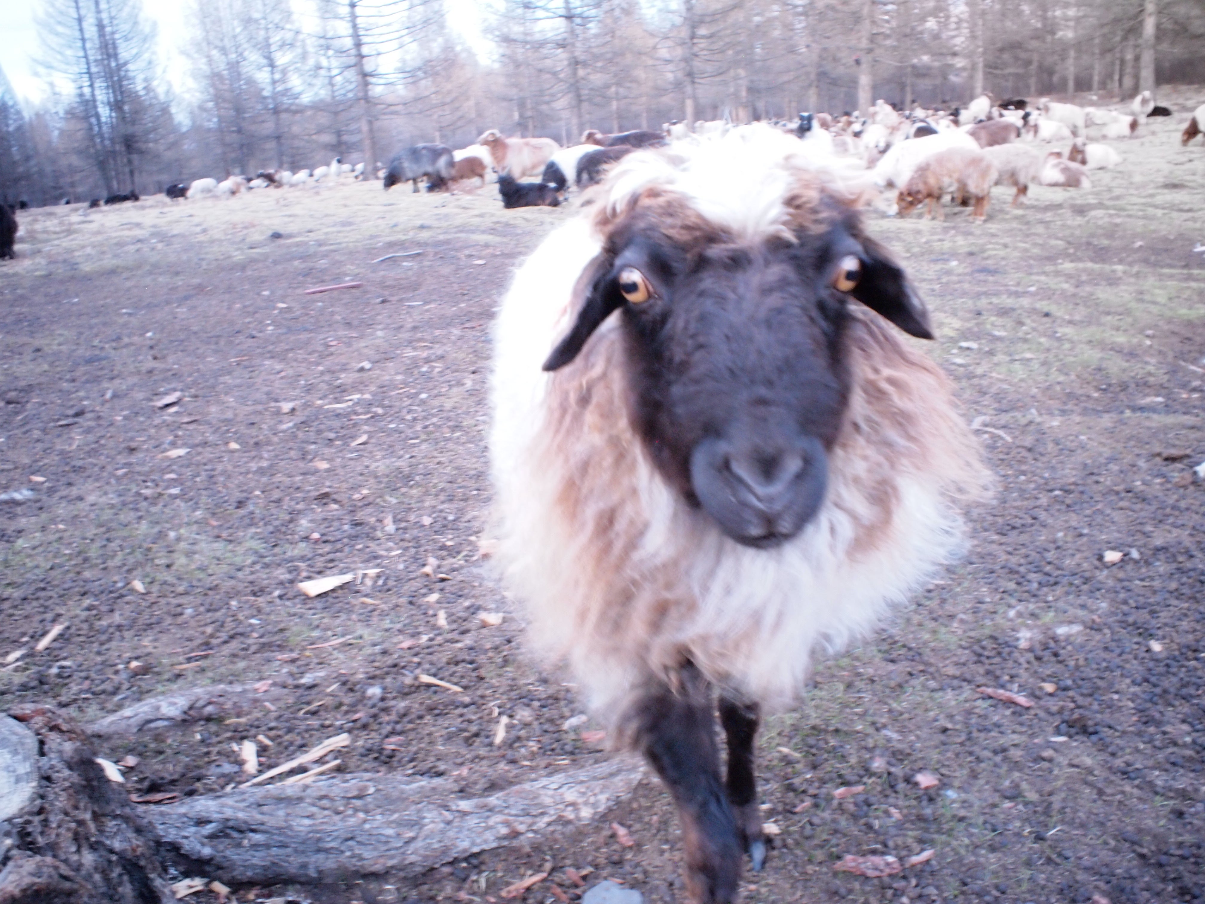 迫ってくる珍しい羊