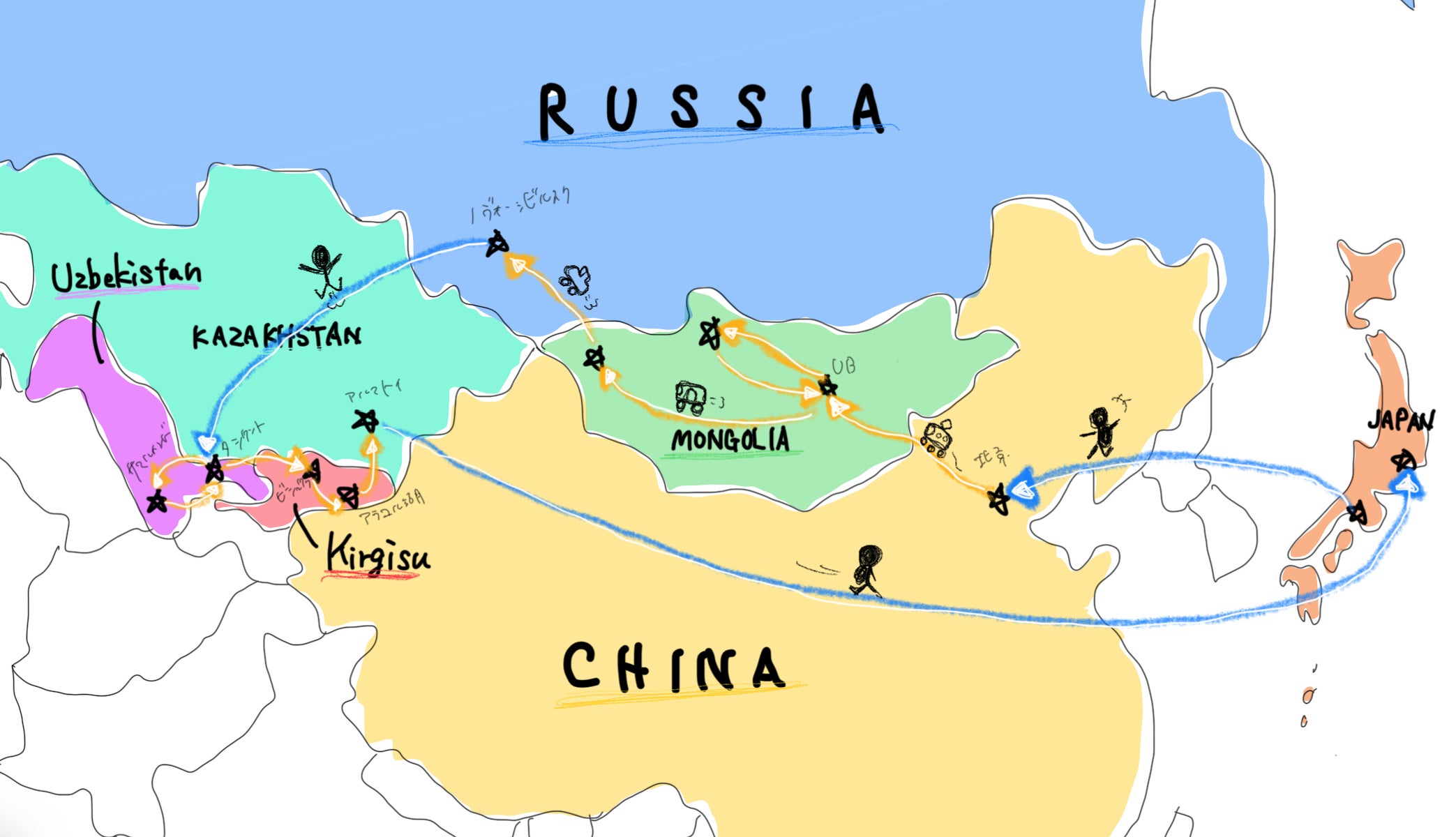 3ヶ月の旅のルート!(ぜひ拡大してみてください)